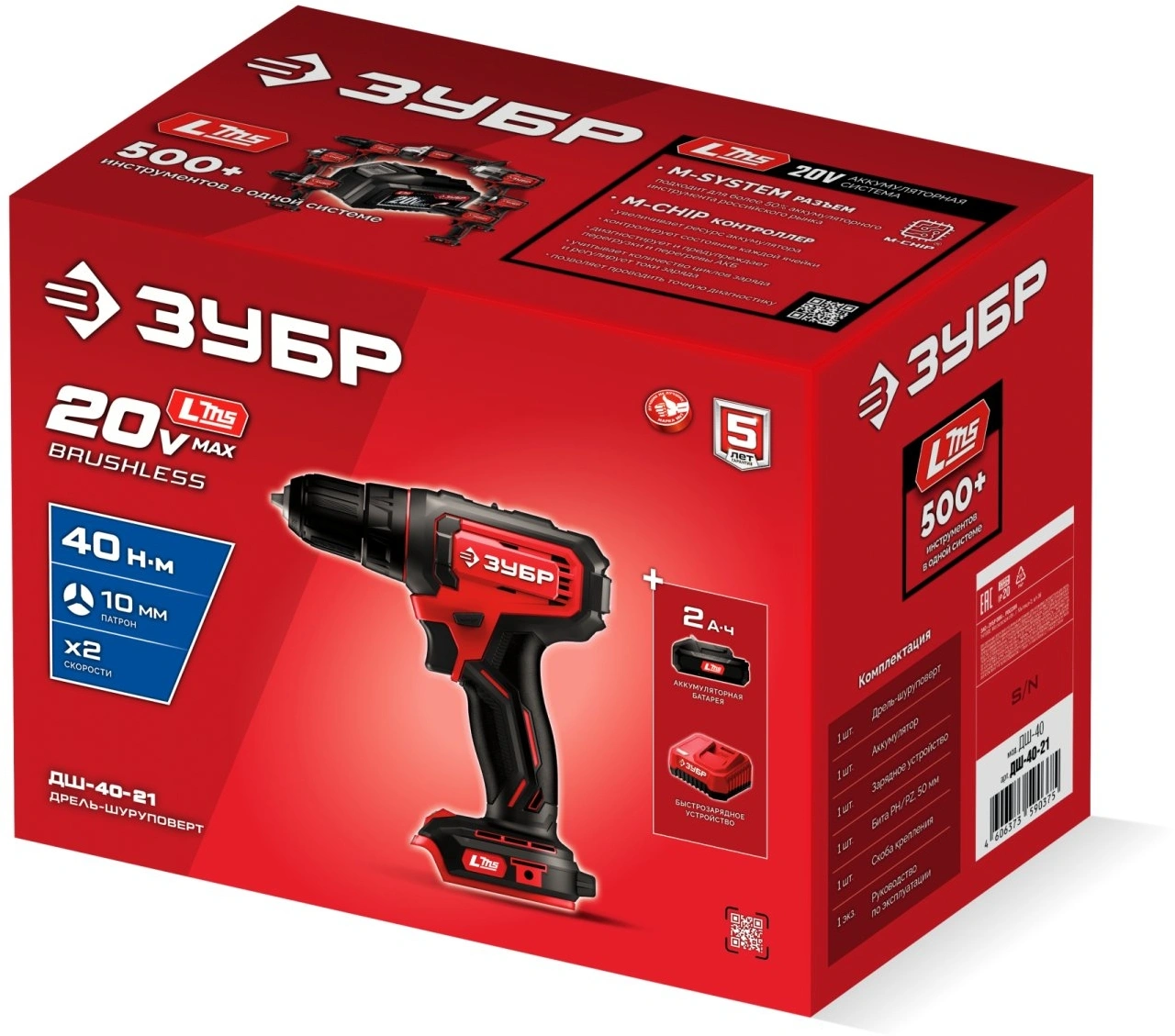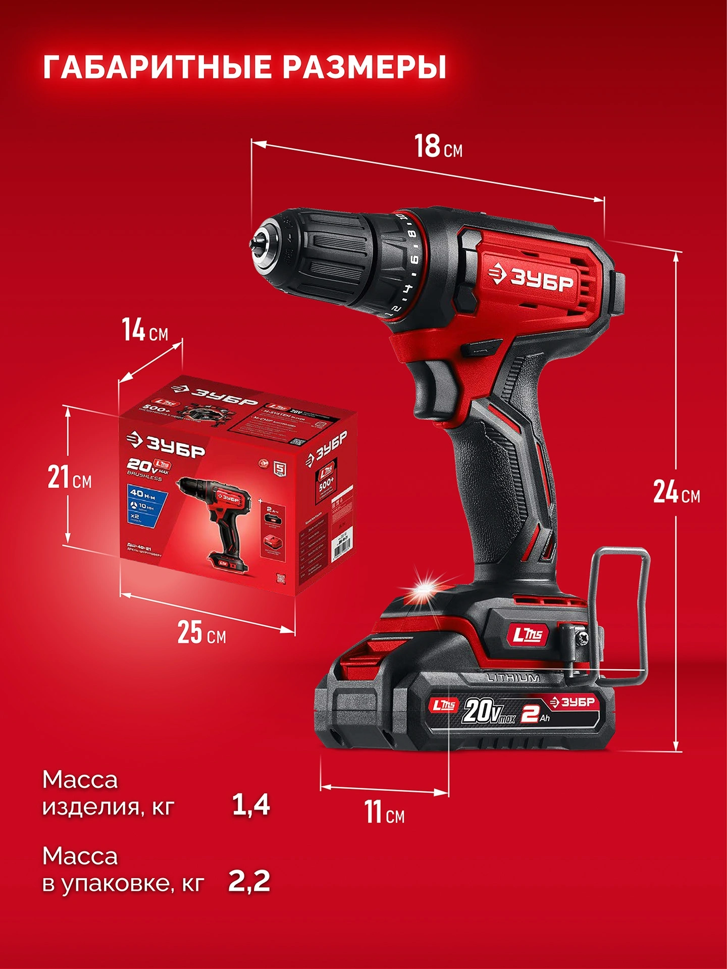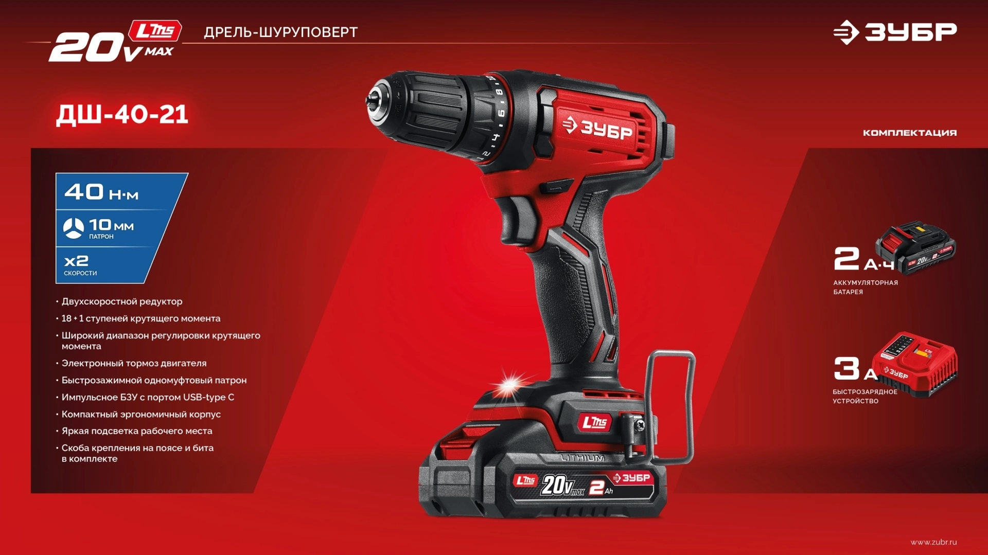 Дрель-шуруповерт Зубр ДШ-40-21 40Вт аккум. патрон:быстрозажимной