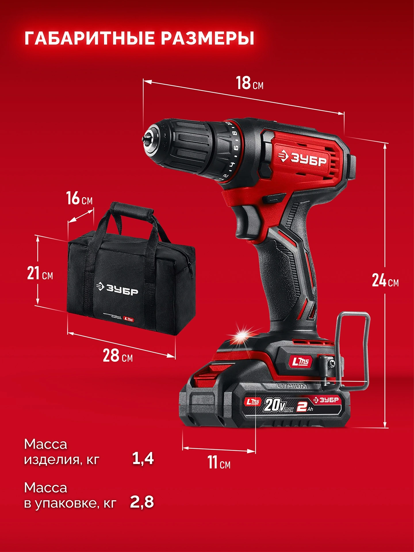 Дрель-шуруповерт Зубр ДШ-40-22 40Вт аккум. патрон:быстрозажимной