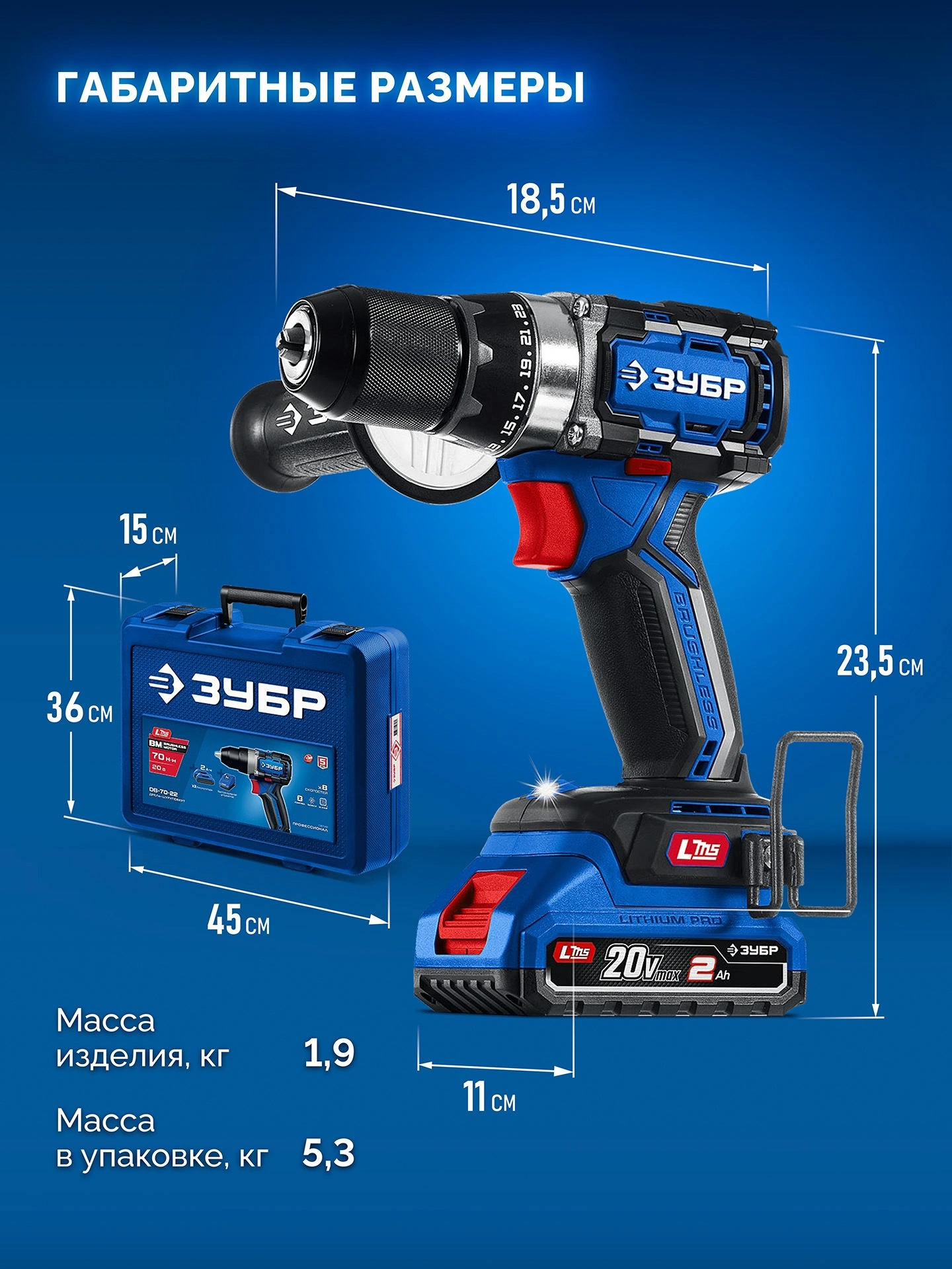 - Комплект поставкиДрель-шуруповерт, аккумулятор - 2 шт., зарядное устройство, рукоятка дополнительная, скоба поясная, бита 50 мм. PH, PZ; битодержатель, кейс, руководство по эксплуатации.