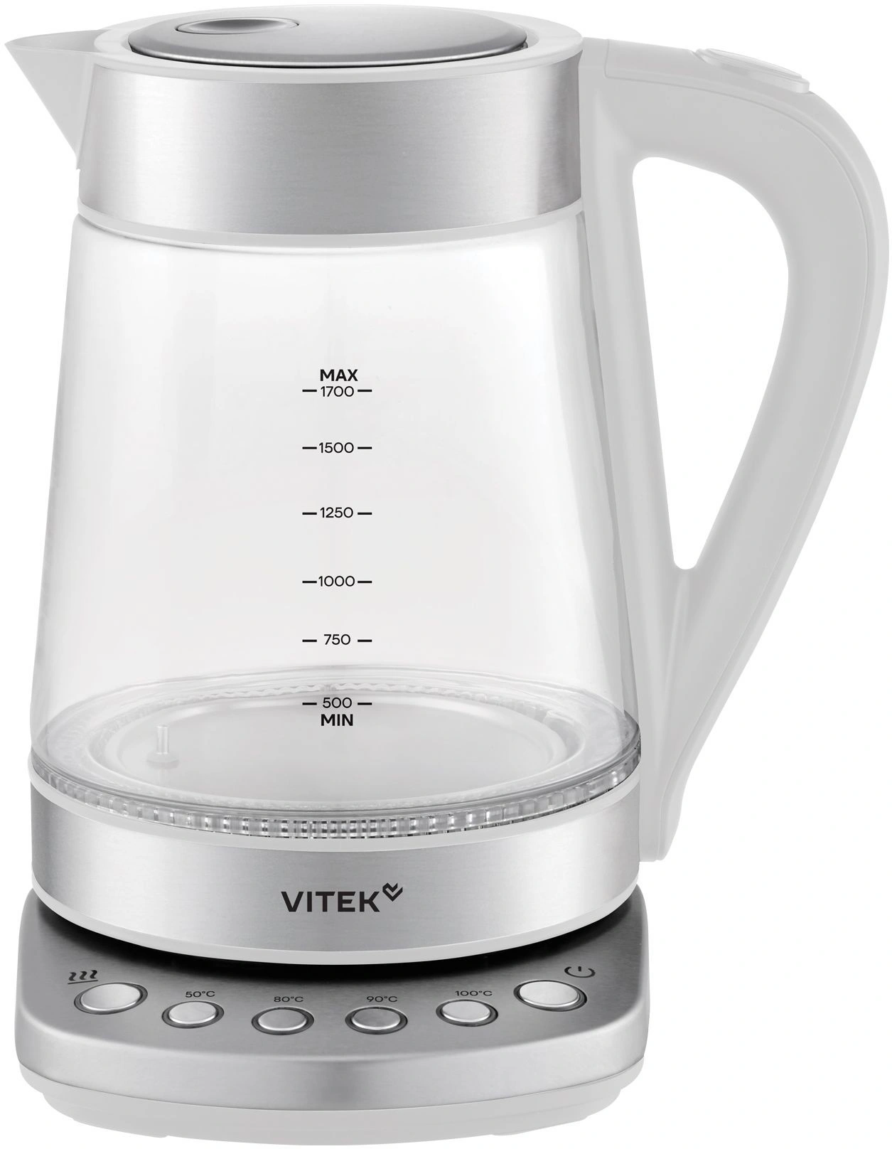 Чайник электрический Vitek VT-WK1031 1.7л. 2200Вт белый/серебристый корпус: стекло/металл/пластик
