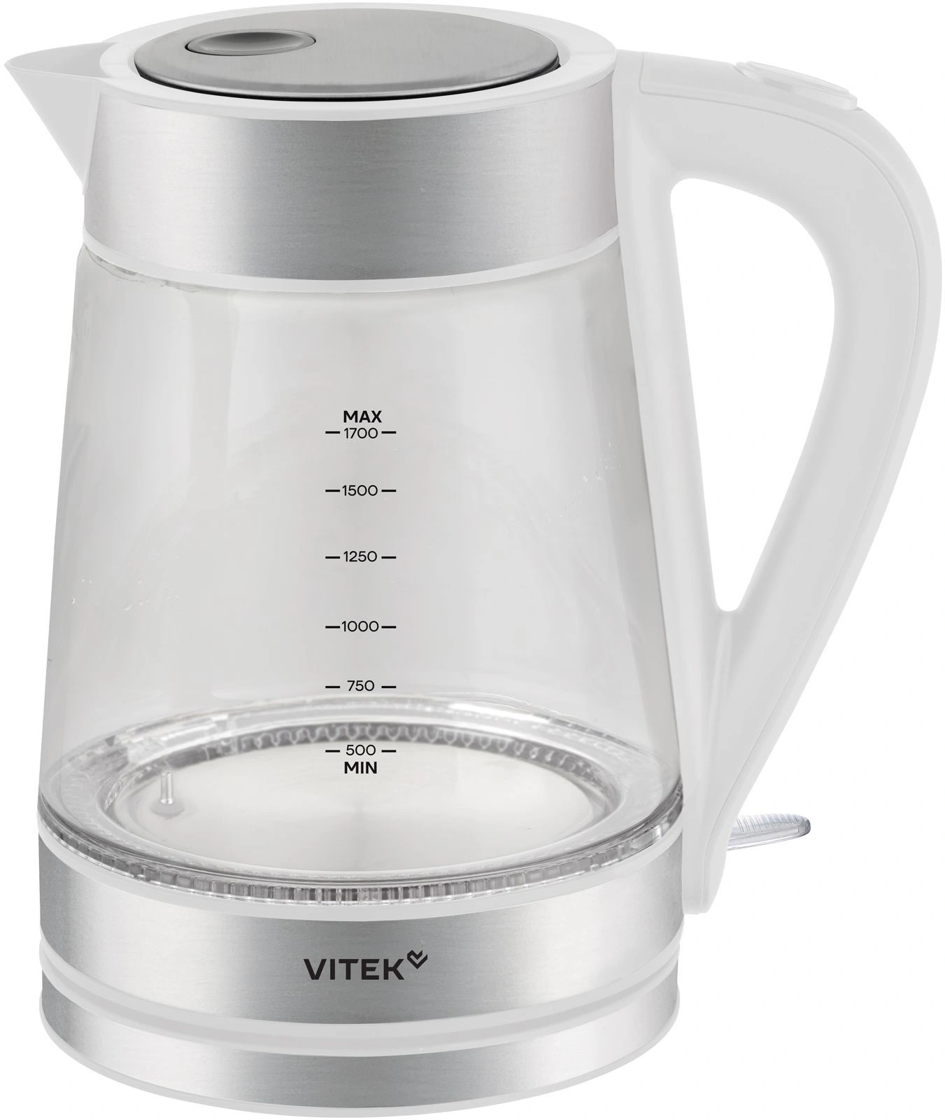 Чайник электрический Vitek VT-WK1030 1.7л. 2200Вт белый/серебристый корпус: стекло