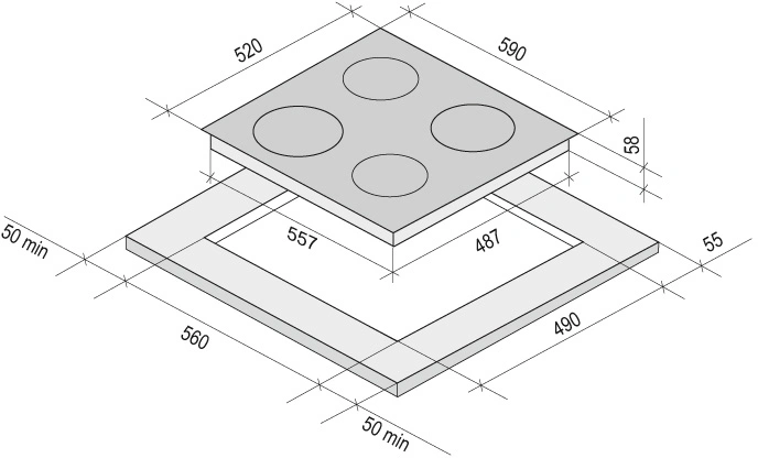 - Мощность (левой ближней конфорки)1.8/2.2 кВт