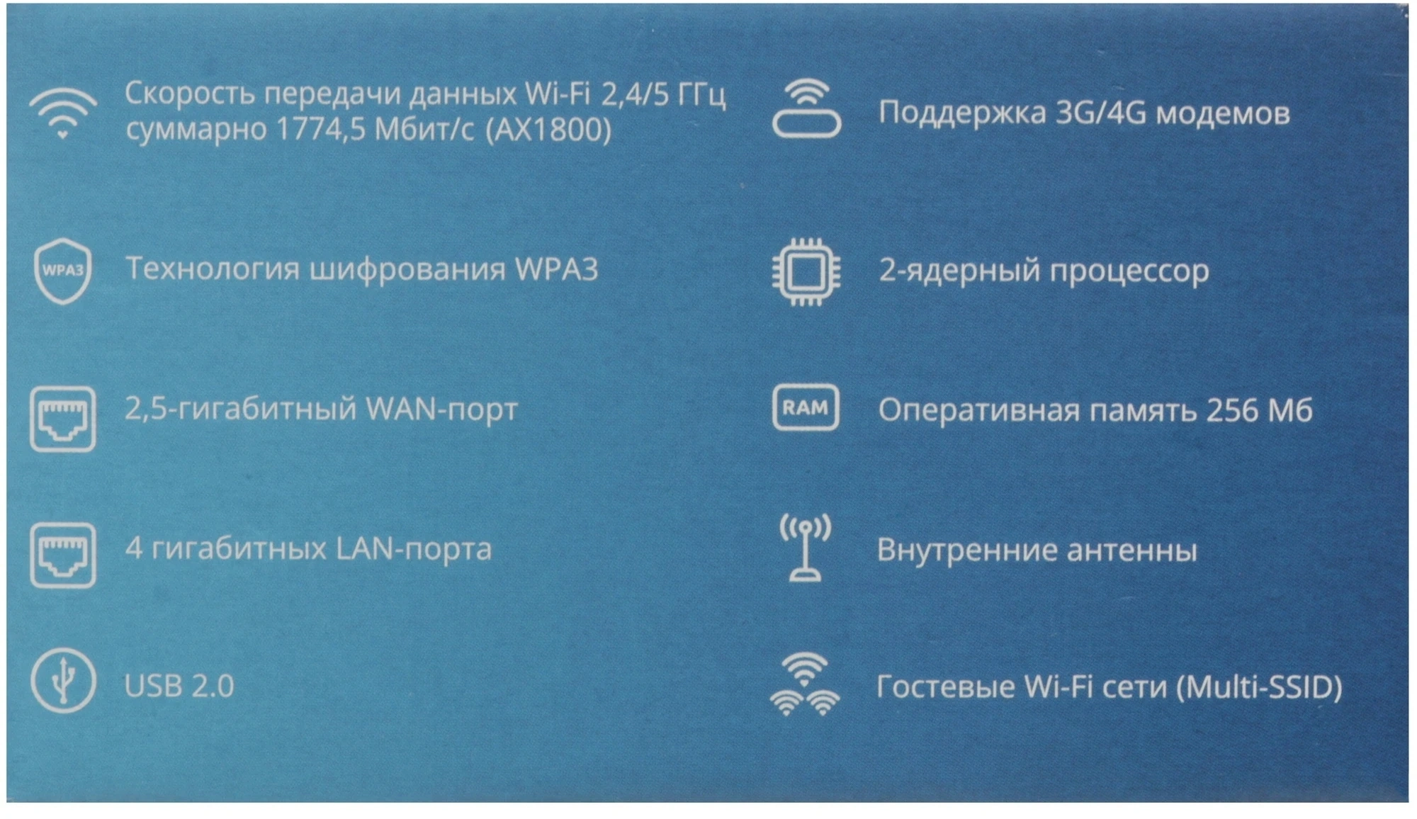 - ОсобенностиАбонентский маршрутизатор RG-1520G-Wax: 1 порт WAN 10/100/1000/2500 Base-T, 4 порта LAN 10/100/1000Base-T, 1xUSB, Wi-Fi (802.11ax, 2*2 - 573Мбит/с - 2.4ГГц + 802.11ax, 2*2 - 1201Мбит/с-5ГГц)