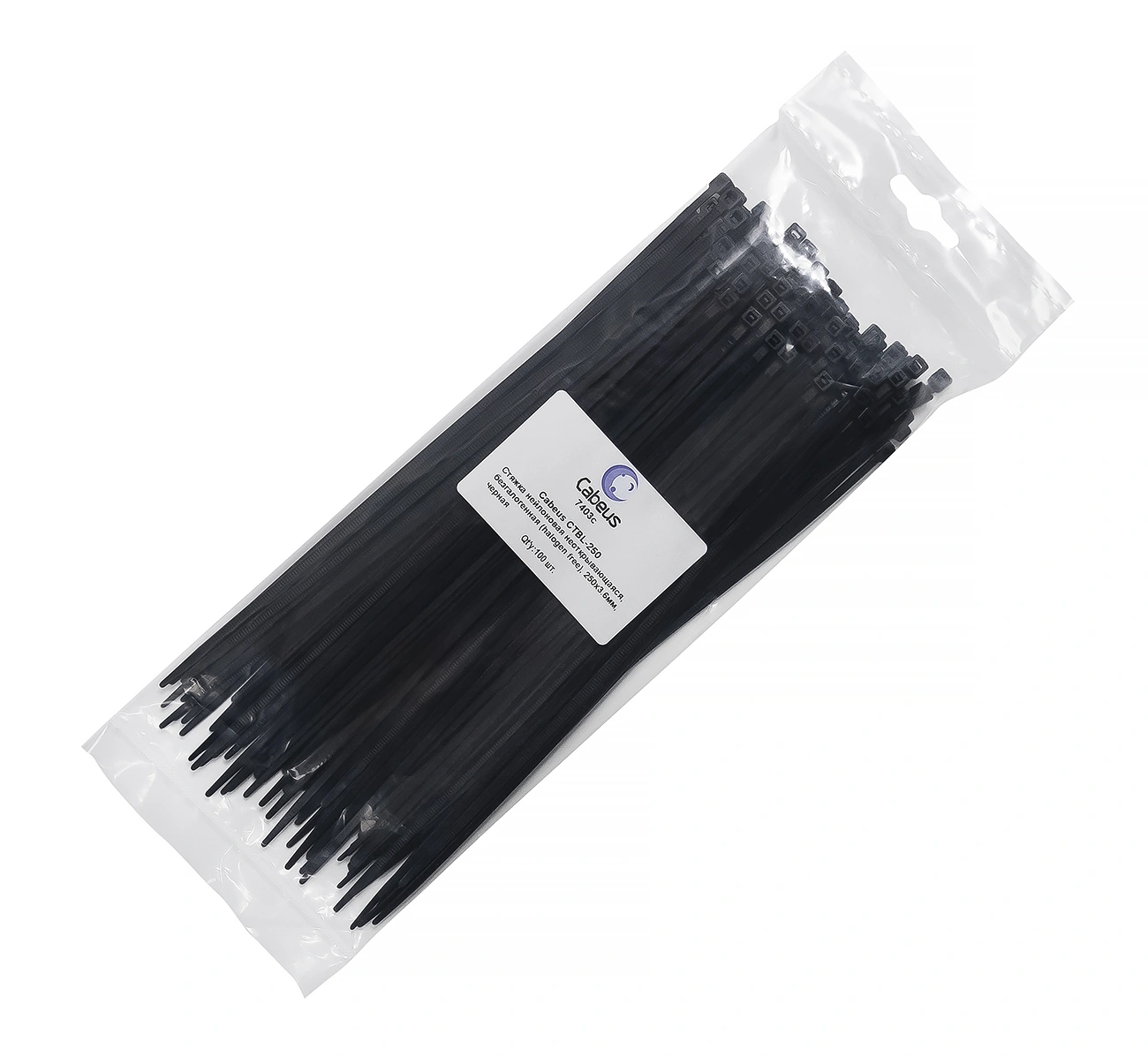 Стяжка пластиковая Cabeus CTBL-300 300x3.6мм (упак:100шт) нейлон внешний (-40/+85) черный