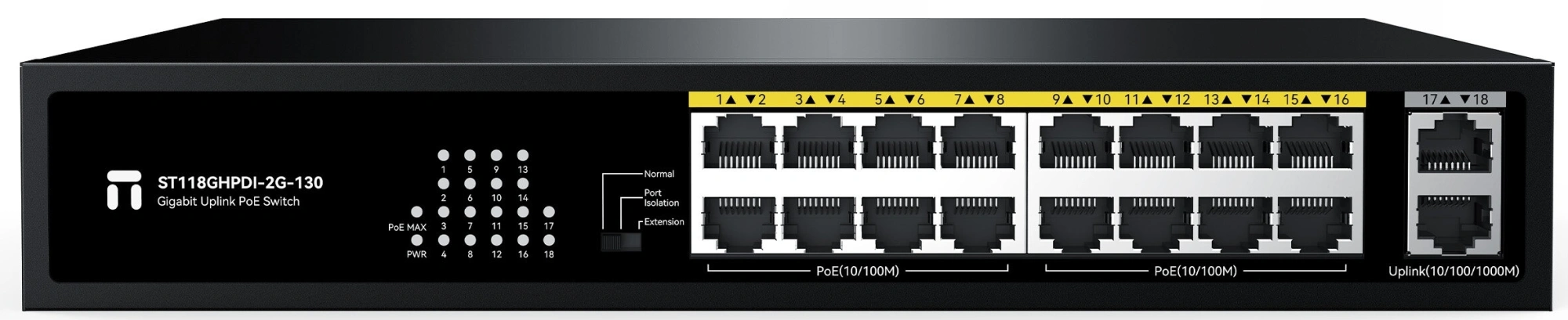 Коммутатор Netis ST118GHPDI-2G-130 16x100Мбит/с 2x1Гбит/с 16PoE 130W неуправляемый