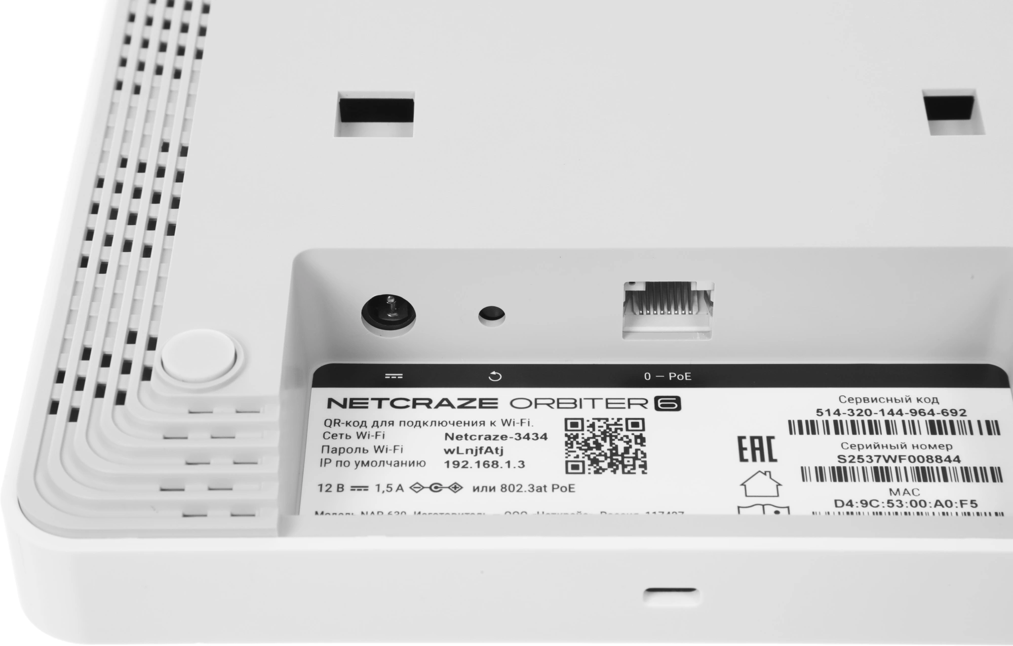 - КомплектацияТочка доступа Keenetic Netcraze Orbiter 6, адаптер питания: 12 В 1.5 A; комплект монтажа на потолок/стену, инструкция по применению.