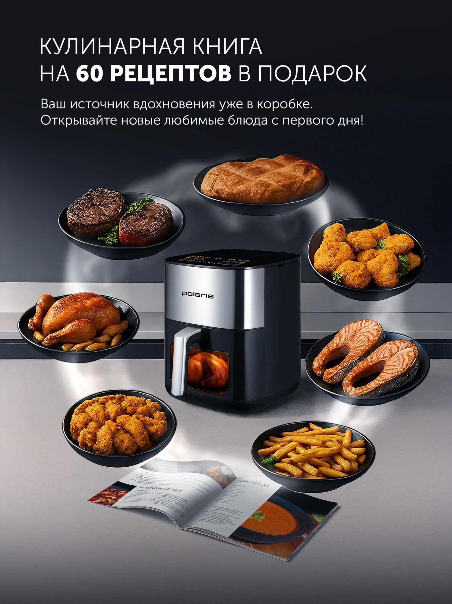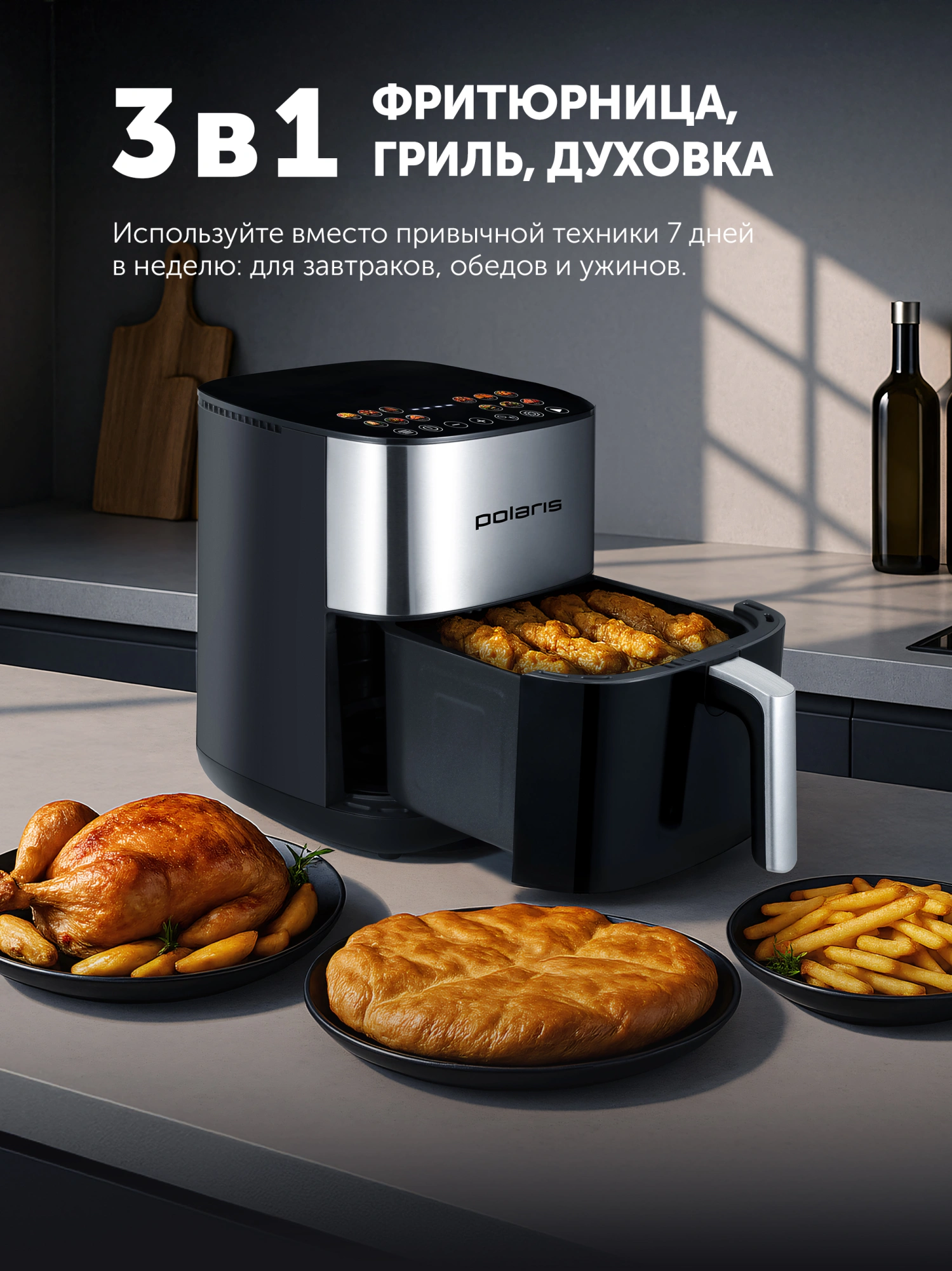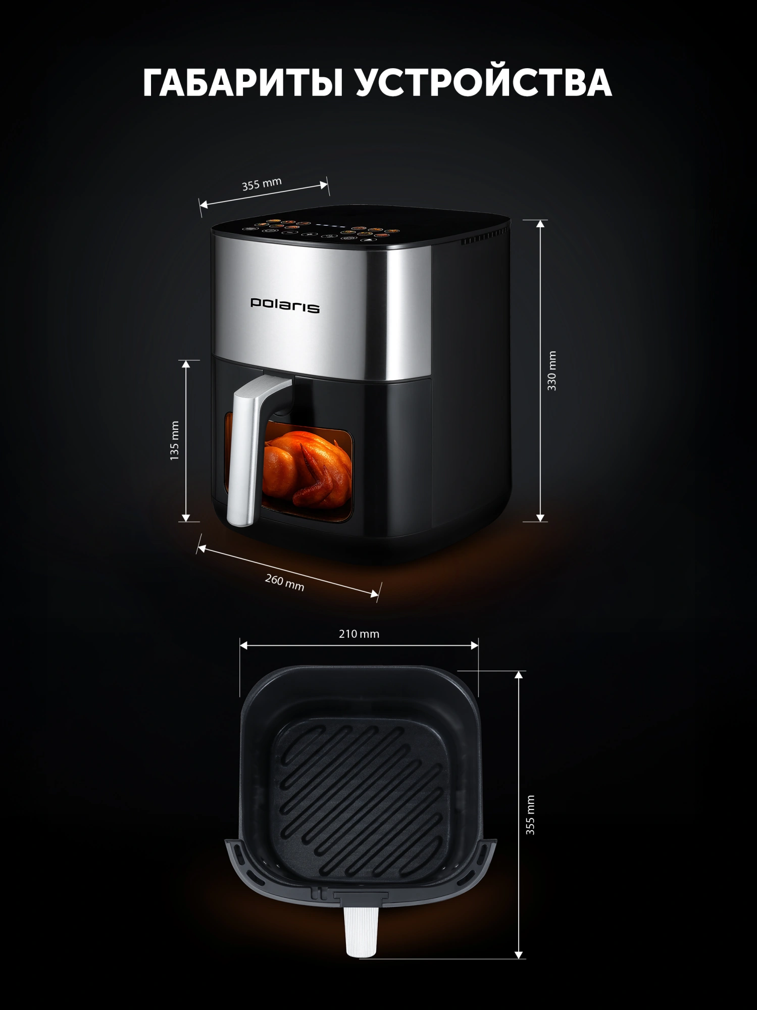 Аэрогриль Polaris PAF 6006DW 2000Вт темно-серый