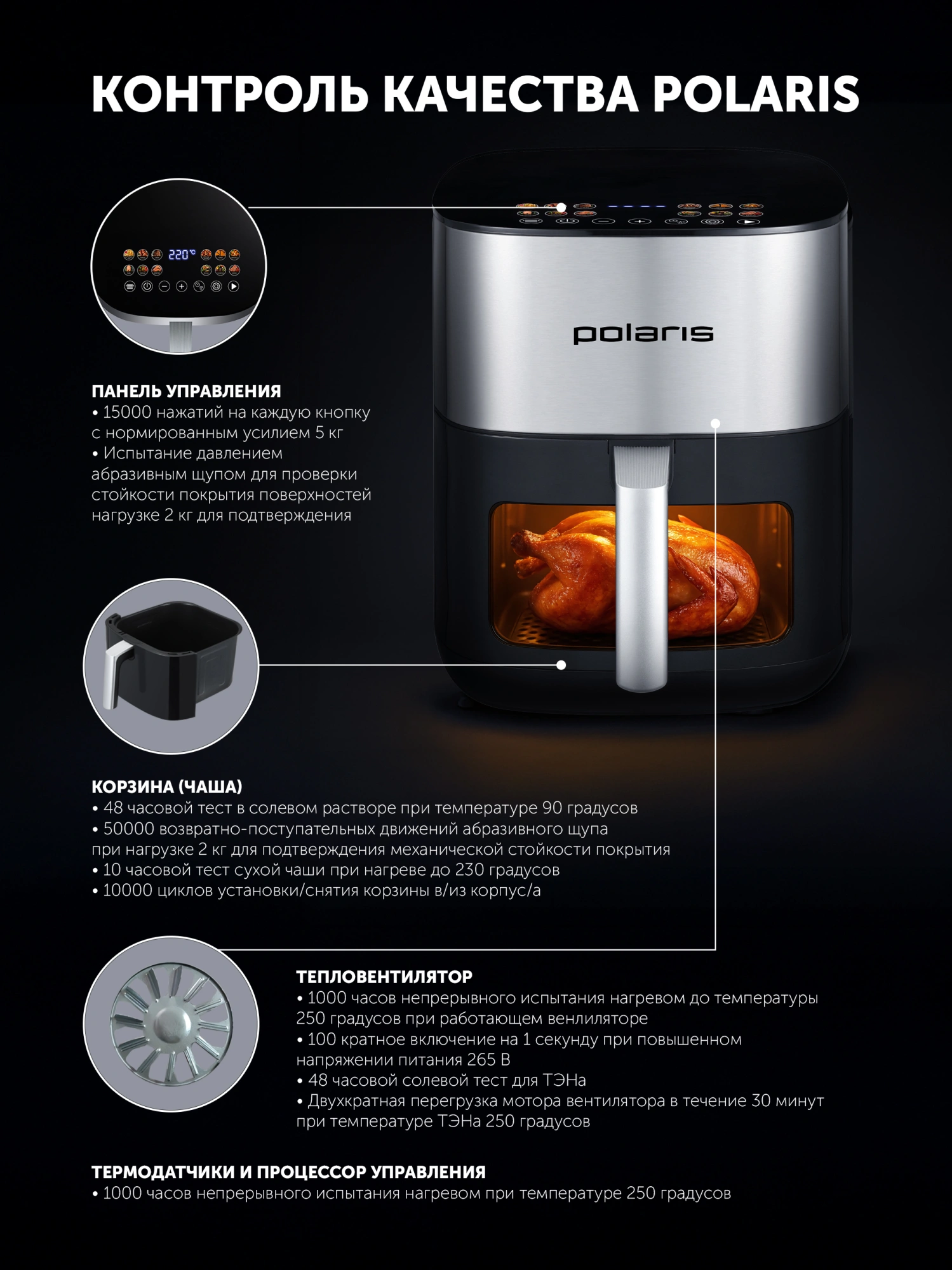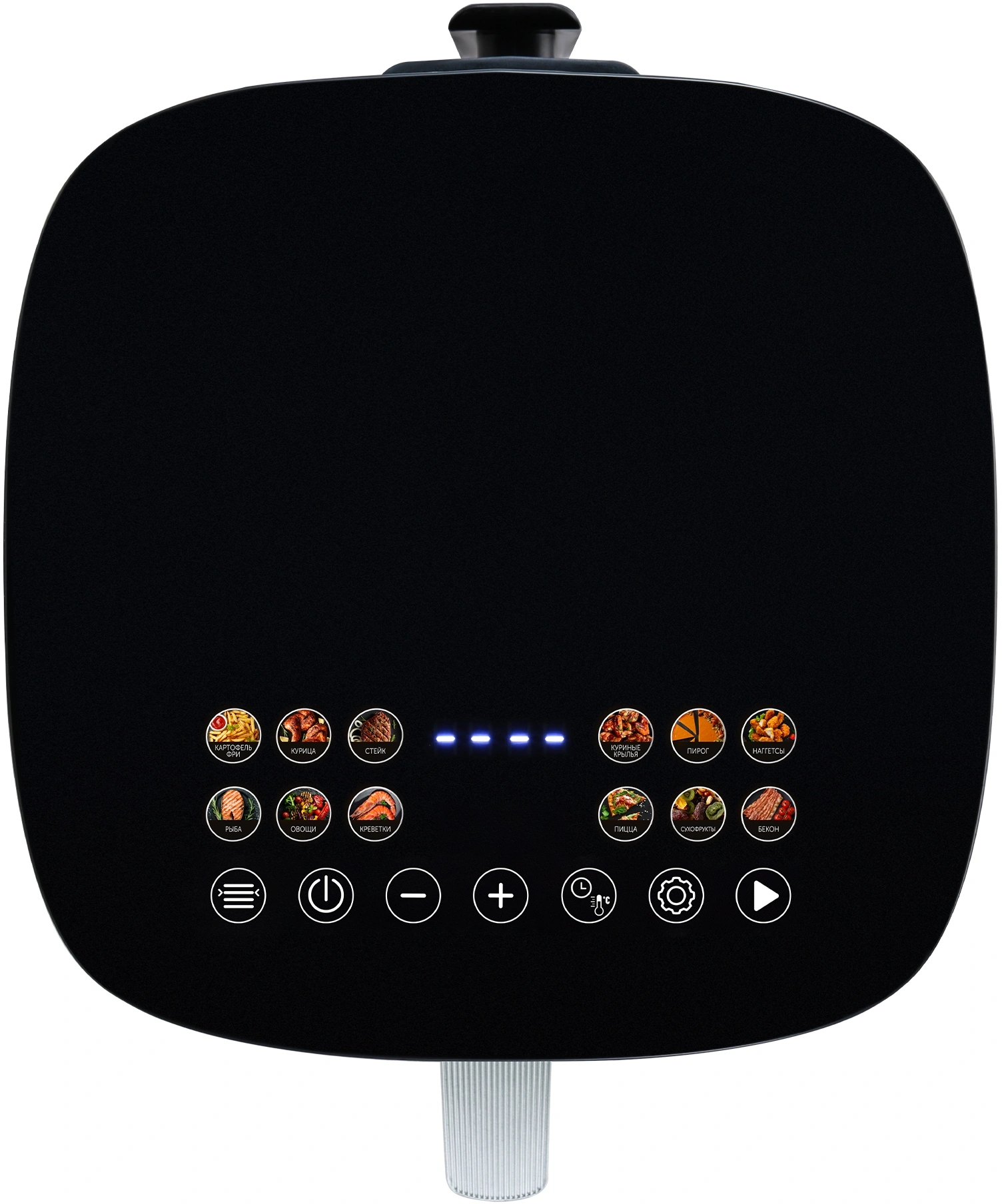- Список режимов/программ приготовлениякартофель фри; курица; стейк; куриные крылья; пирог; наггетсы; рыба; овощи; креветки; пицца; сухофрукты; бекон