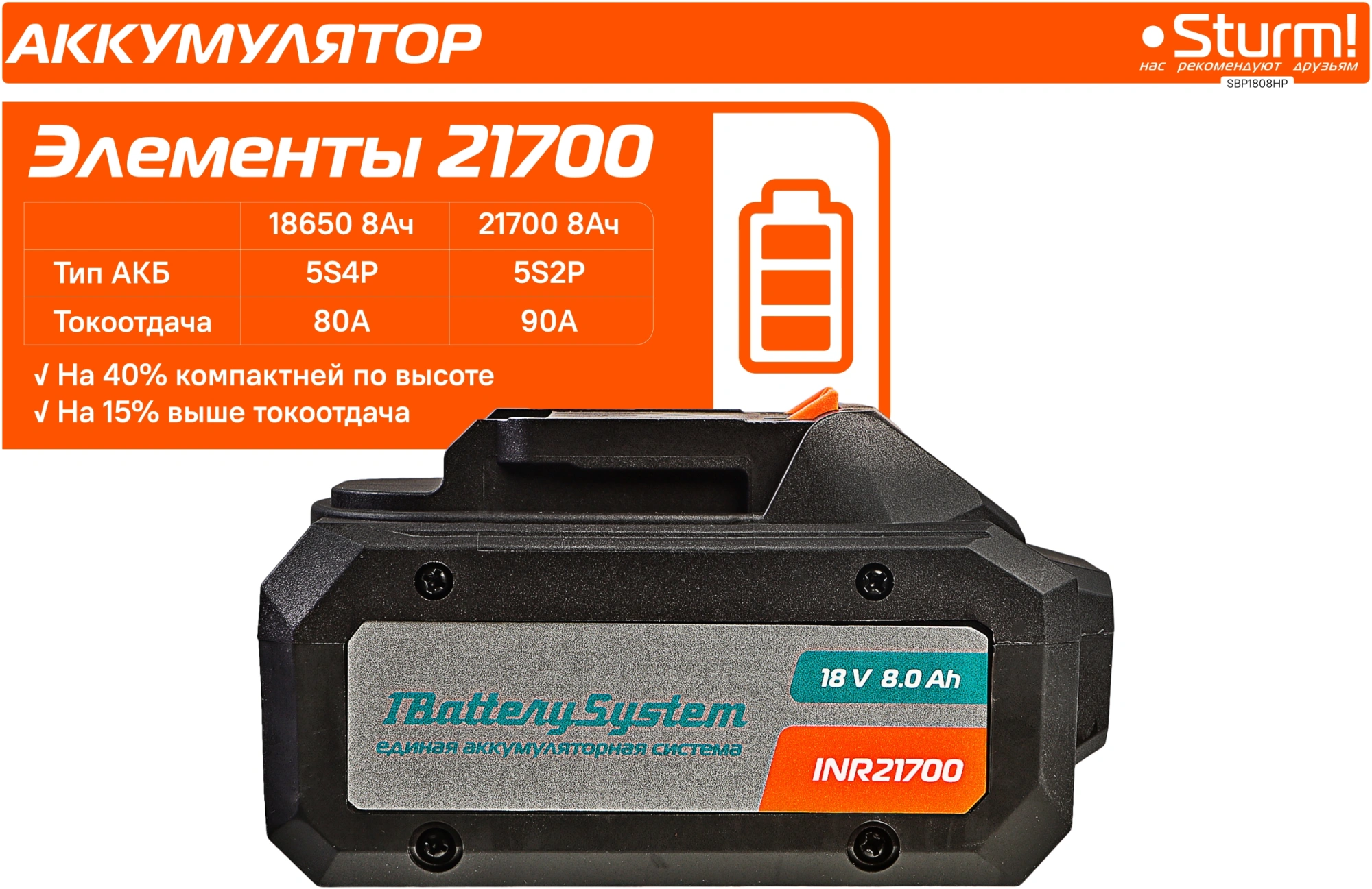 Батарея аккумуляторная Sturm! SBP1808HP 18В 8Ач Li-Ion