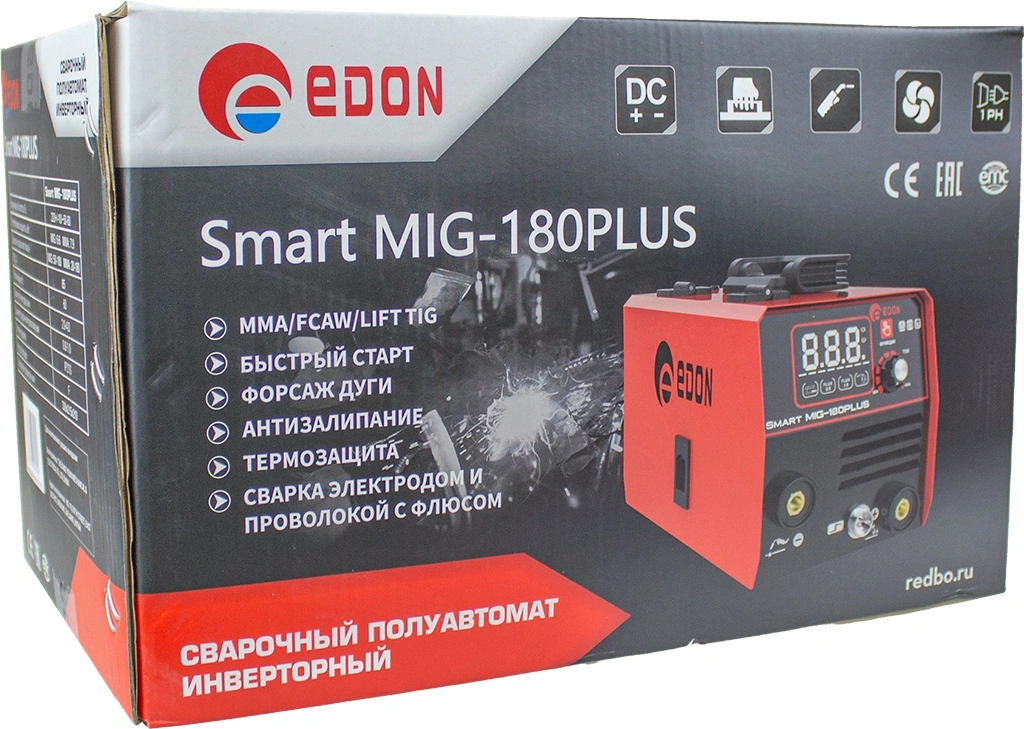 Сварочный аппарат Edon Smart MIG-180PLUS инвертор ММА DC/MIG-MAG/FCAW 7.9кВт