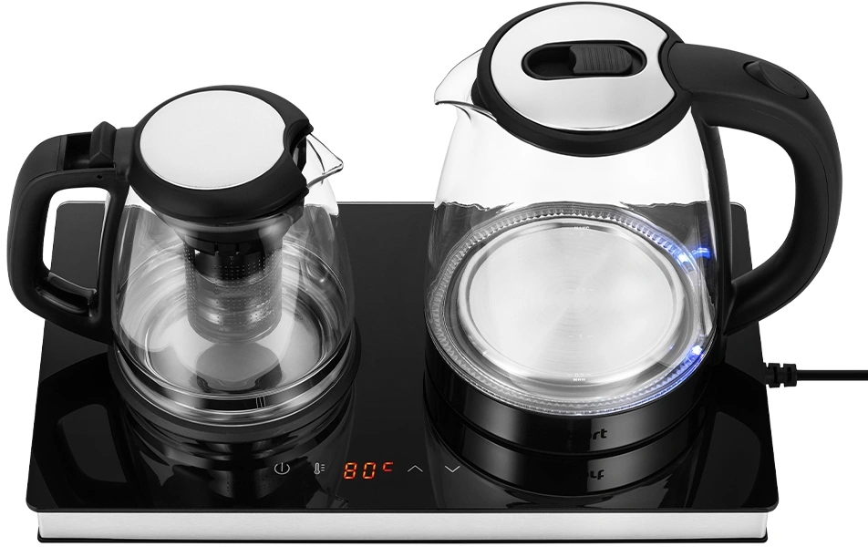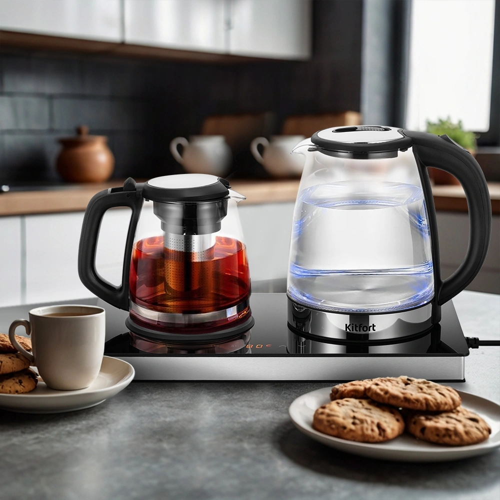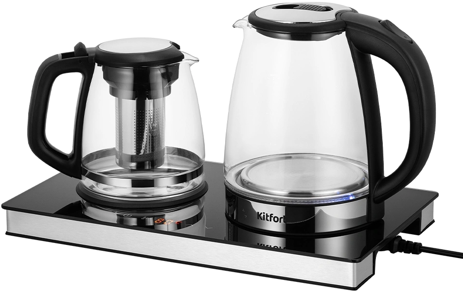 Чайный набор Kitfort КТ-6737 2л. 1530Вт черный/нержавеющая сталь корпус: Металл/стекло/пластик