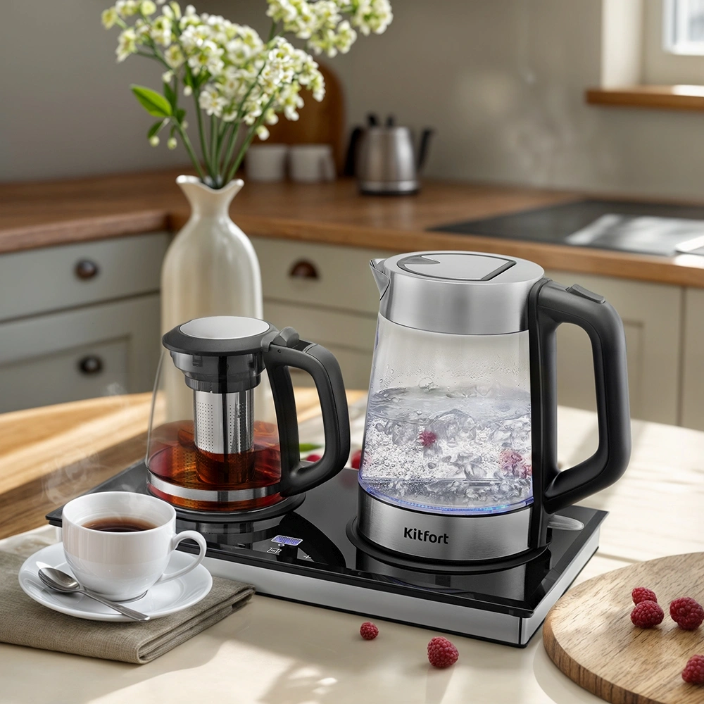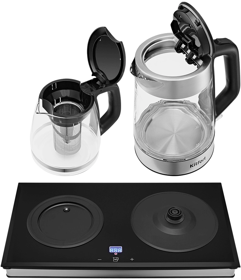 Чайный набор Kitfort КТ-6776 1.8л. 2200Вт черный/нержавеющая сталь корпус: Металл/стекло/пластик