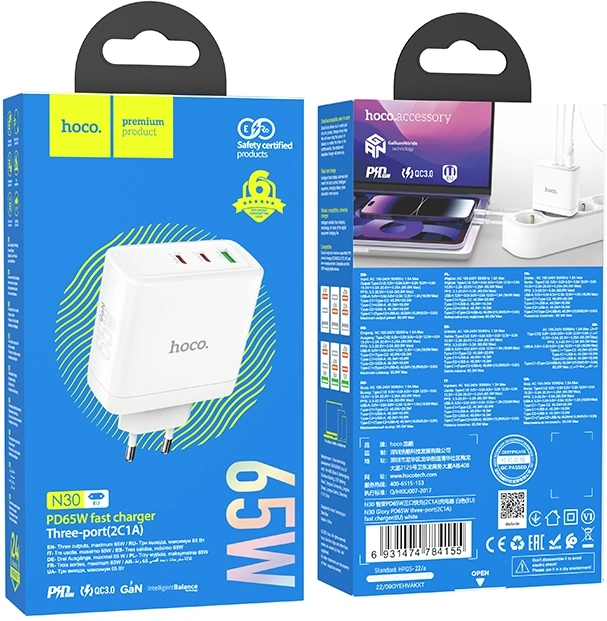 - ОсобенностиПоддержка протоколов быстрой зарядки: для PD65W / PPS / QC3.0 / FCP / AFC.