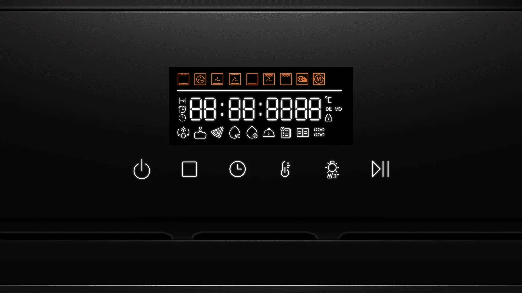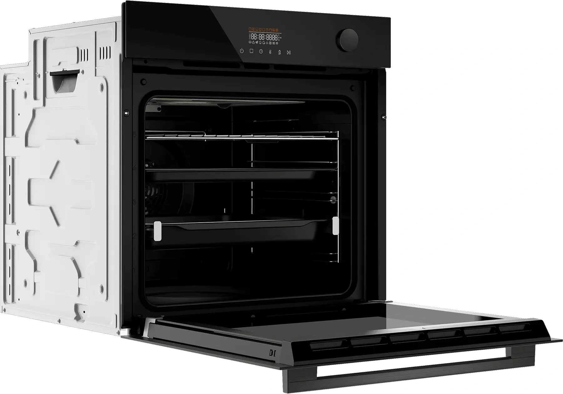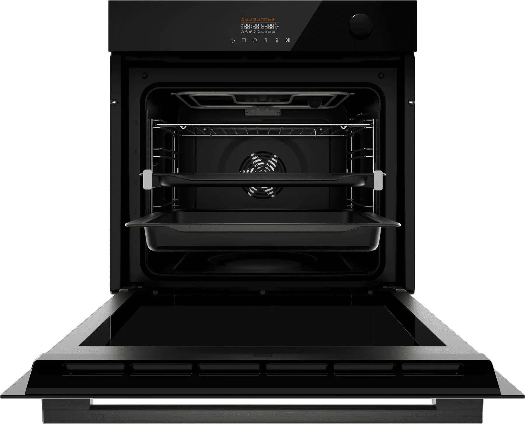 - Особенности конструкциидисплей, полностью стеклянная внутренняя поверхность дверцы духовки, телескопические направляющие