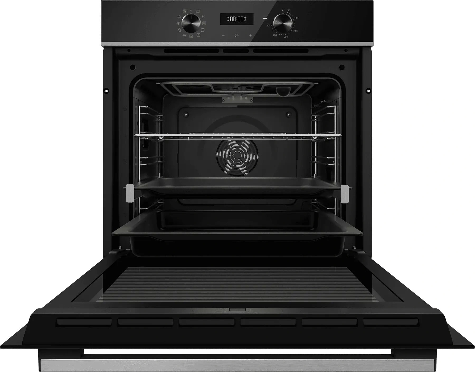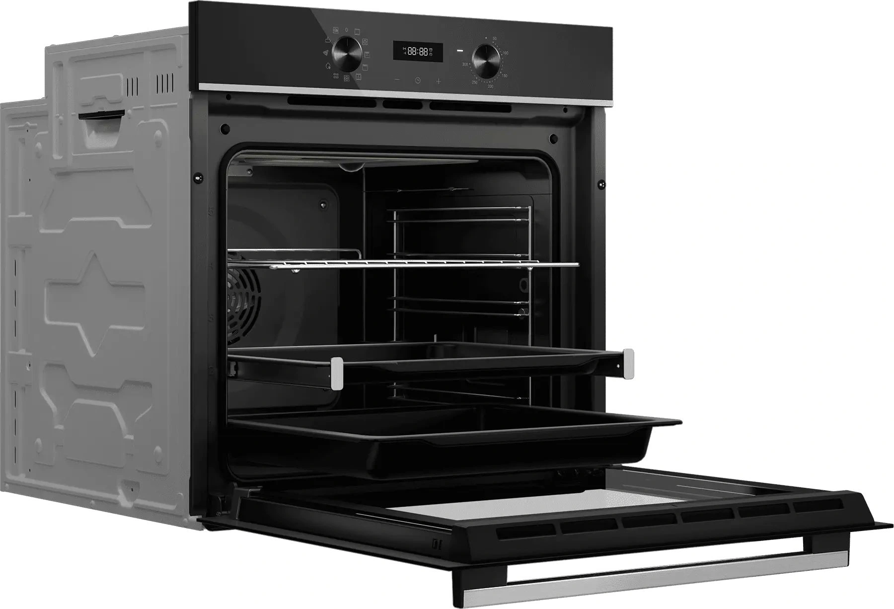 - Особенности конструкциидисплей, полностью стеклянная внутренняя поверхность дверцы духовки, телескопические направляющие