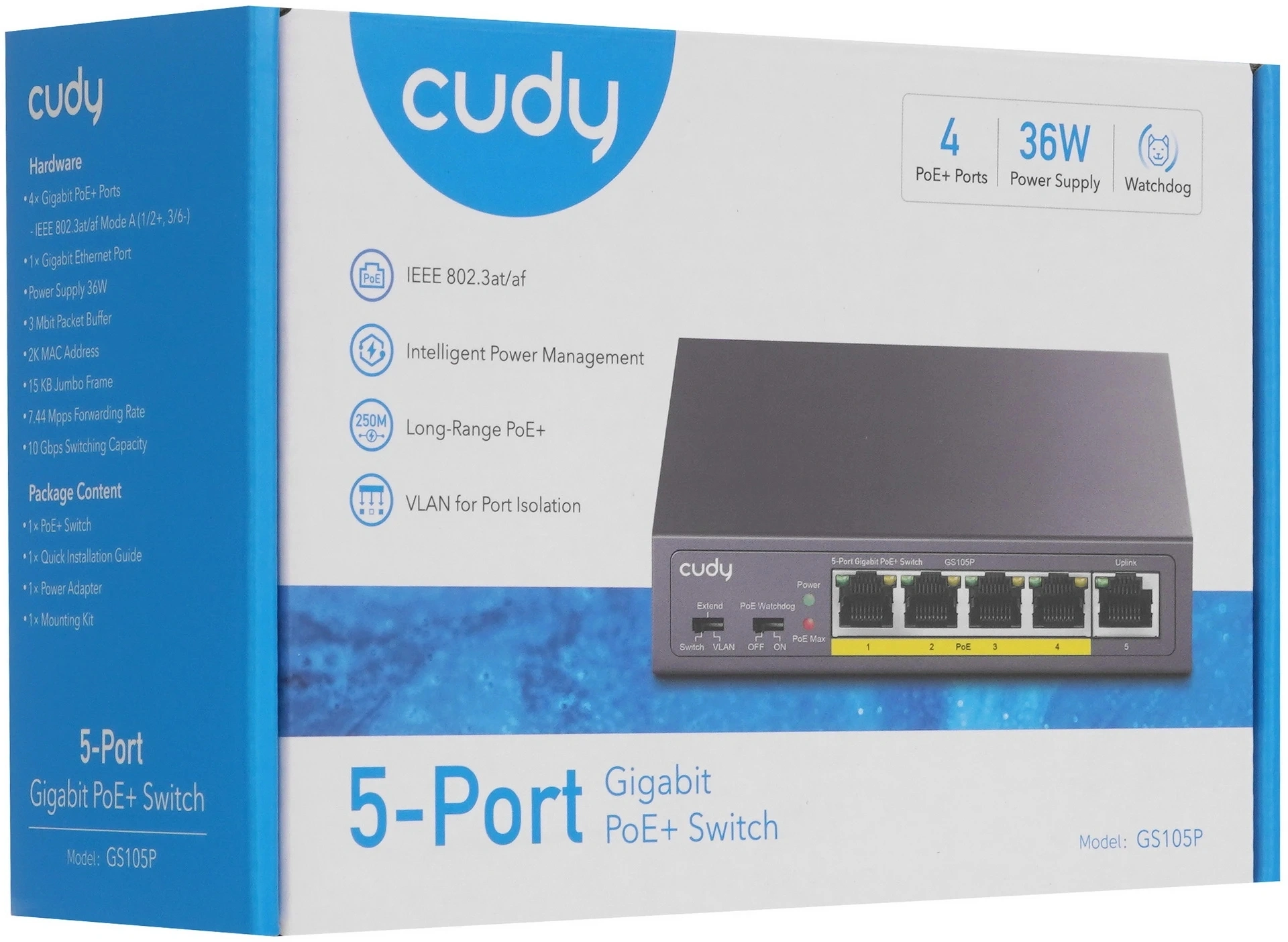 Коммутатор Cudy GS105P (L2) 5x1Гбит/с 4PoE+ управляемый