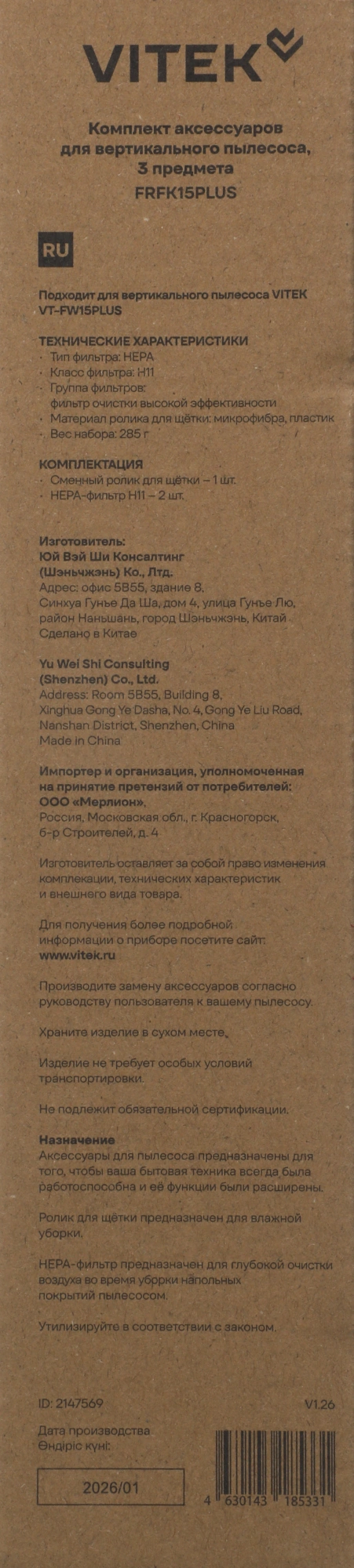| Производитель | VITEK |