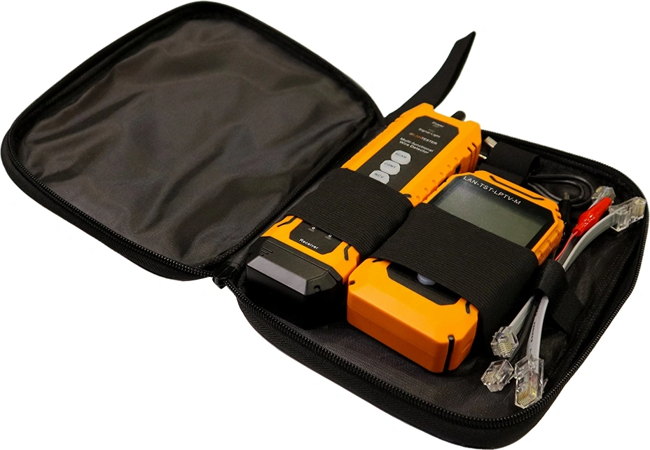 - Комплект поставкиПередатчик (головной прибор); приемник; кабель RJ45 - RJ45; кабель RJ11 - RJ11; кабель RJ11 - крокодилы; кабель зарядки Type-C USB; сумка-чехол; инструкция по эксплуатации.