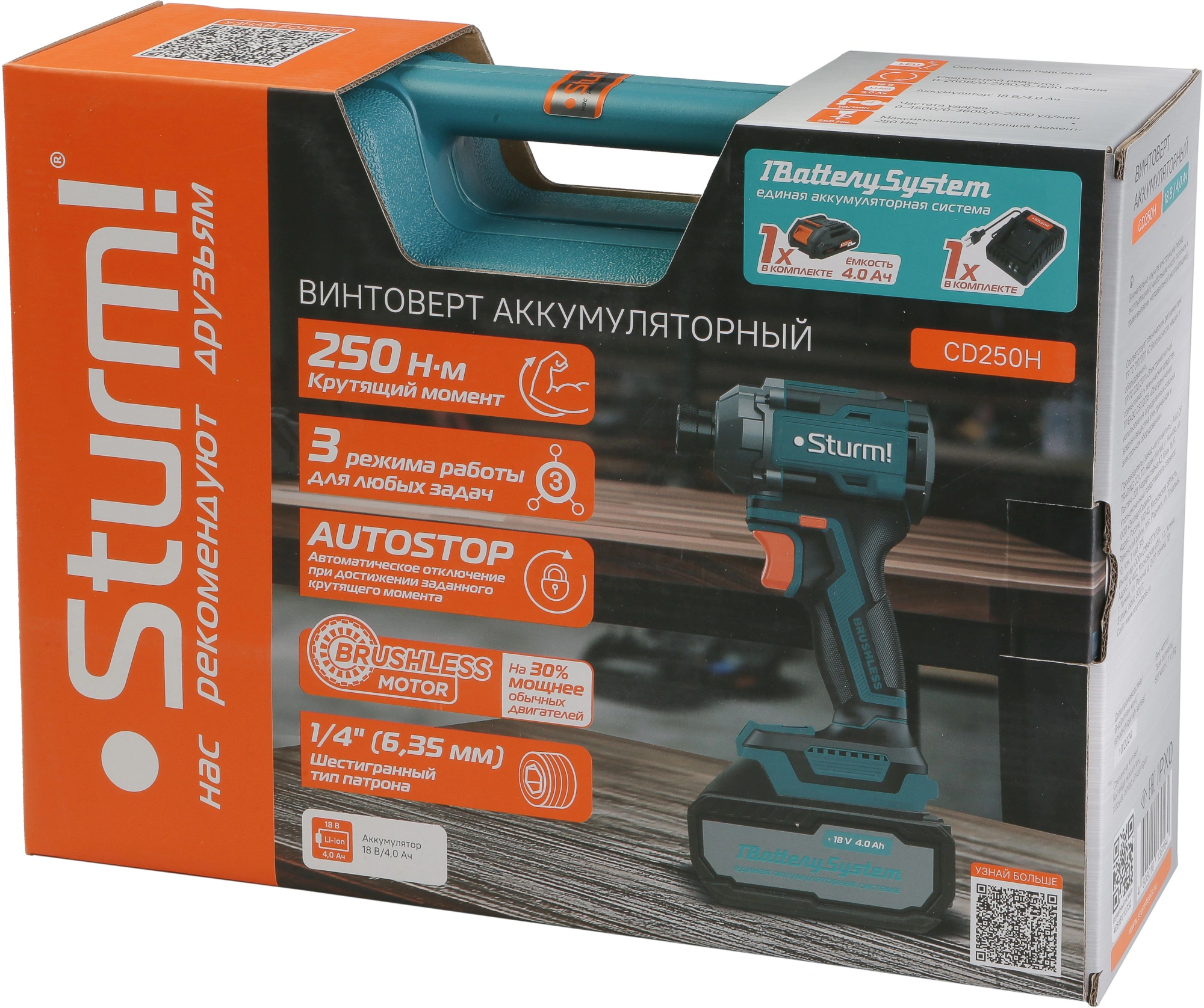 Винтоверт Sturm! CD250H аккум. патрон:шестигр.1/4" (кейс в комплекте)