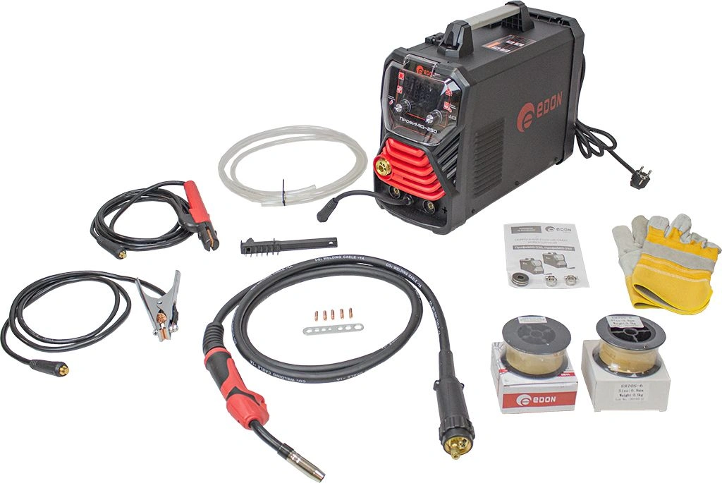 - КомплектацияСварочный аппарат; силовой кабель с зажимом; силовой кабель с электрододержателем; сварочная горелка; руководство по эксплуатации; упаковка; шланг; зачистная щетка-молоток.