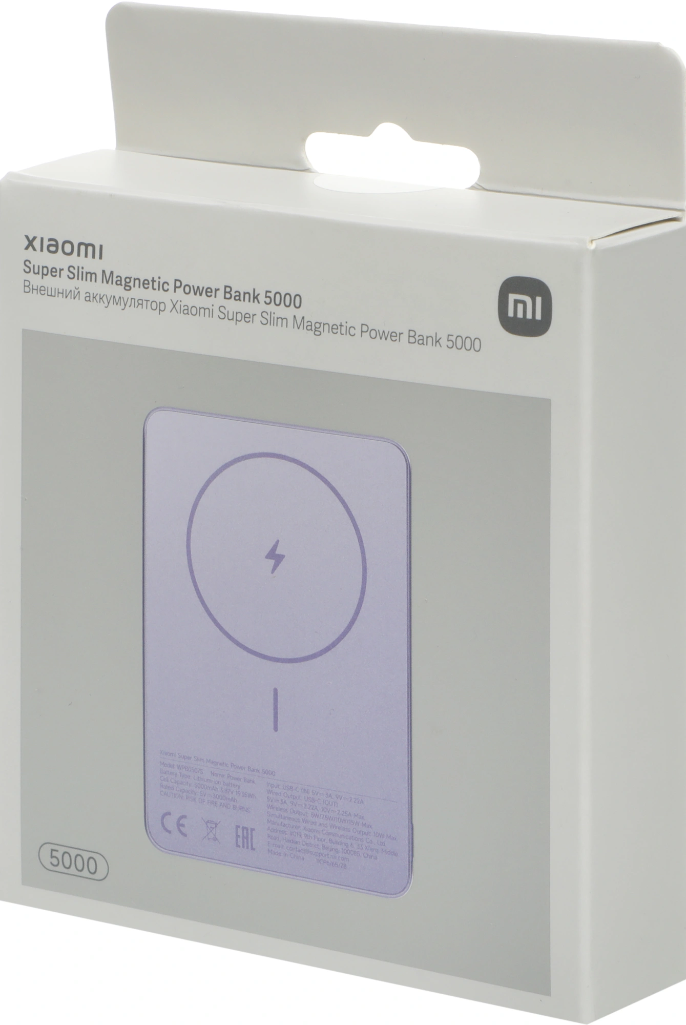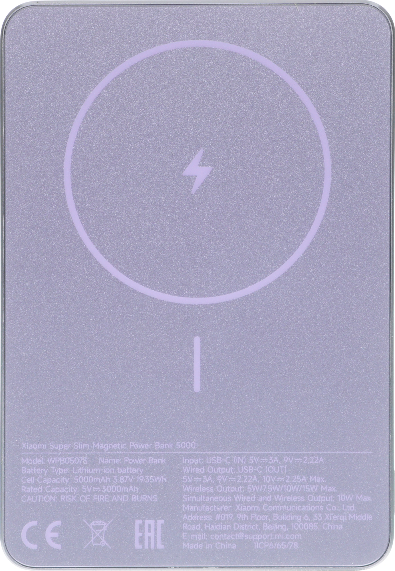 Мобильный аккумулятор Xiaomi Super Slim Magnetic 5000mAh QC3.0/PD3.0 22.5W 3A USB-C беспров.зар. фиолетовый (BHR08PNGL)