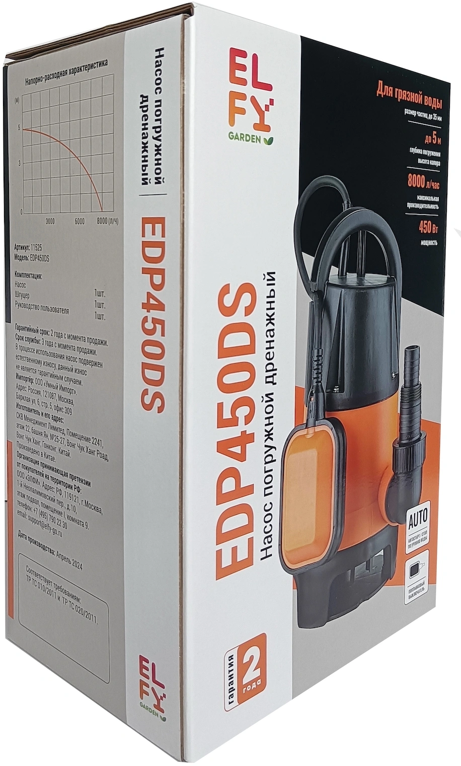 Насос дренажный Elfy EDP450DS 450Вт 8000л/час центробежный (100064192437)