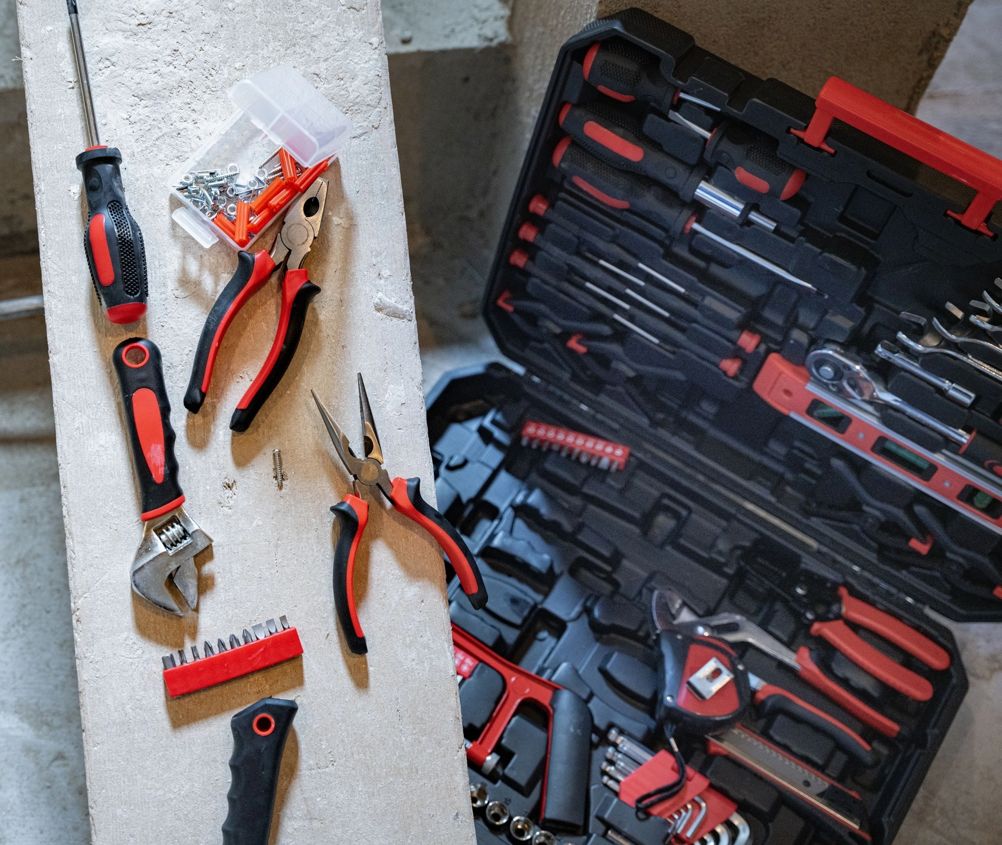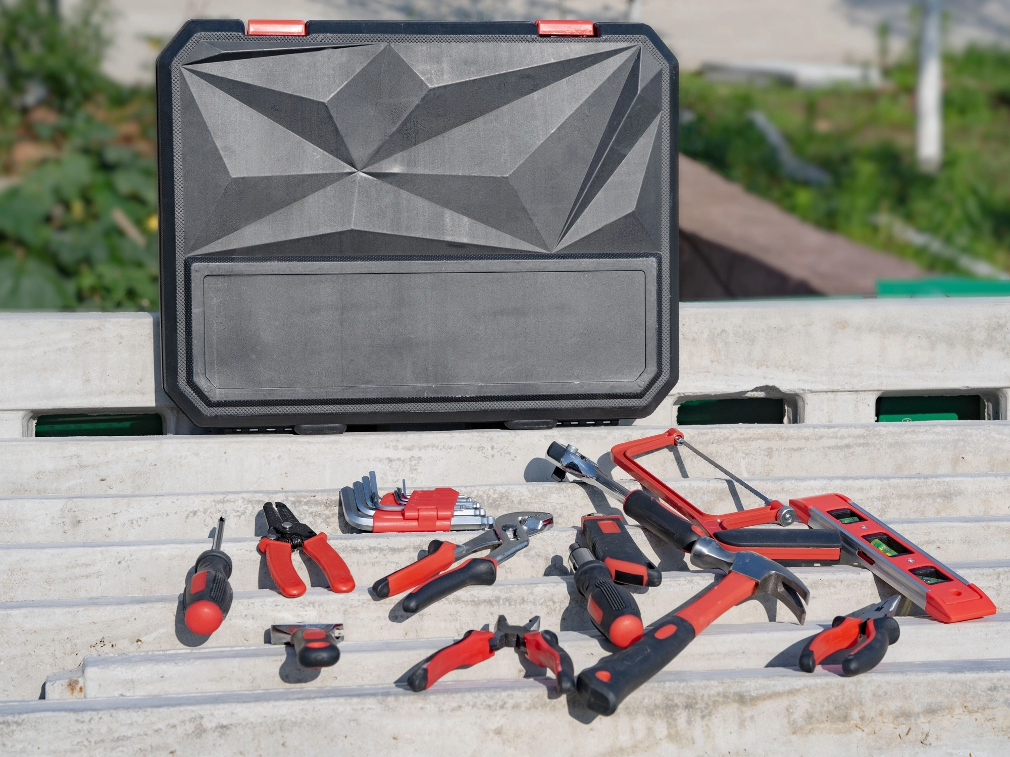 - Прочий инструментбокорезы, длинногубцы, изолента, клещи переставные, ключ разводной, молоток, плоскогубцы, рулетка, уровень