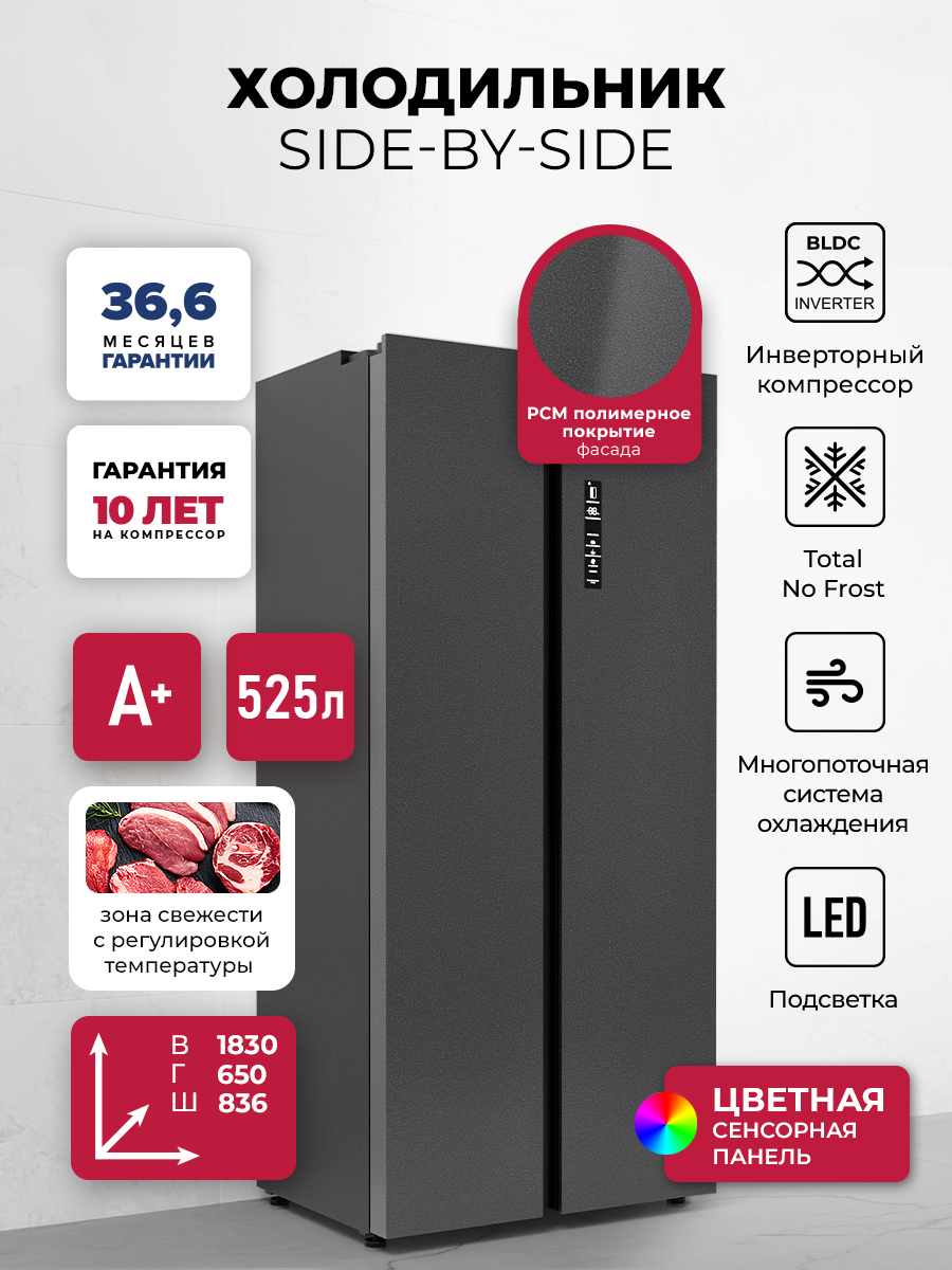 Холодильник Lex LSB525BMID 2-хкамерн. темно-серый