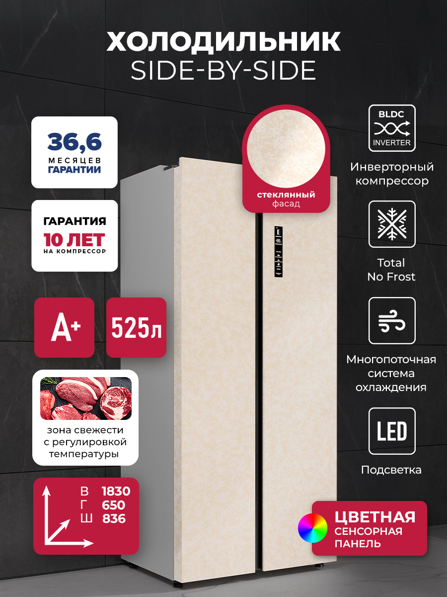 Холодильник Lex LSB525BGID 2-хкамерн. бежевый мрамор