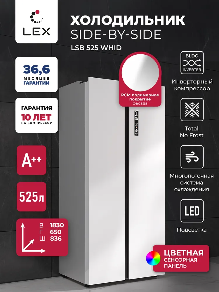 Холодильник Lex LSB525WHID 2-хкамерн. белый