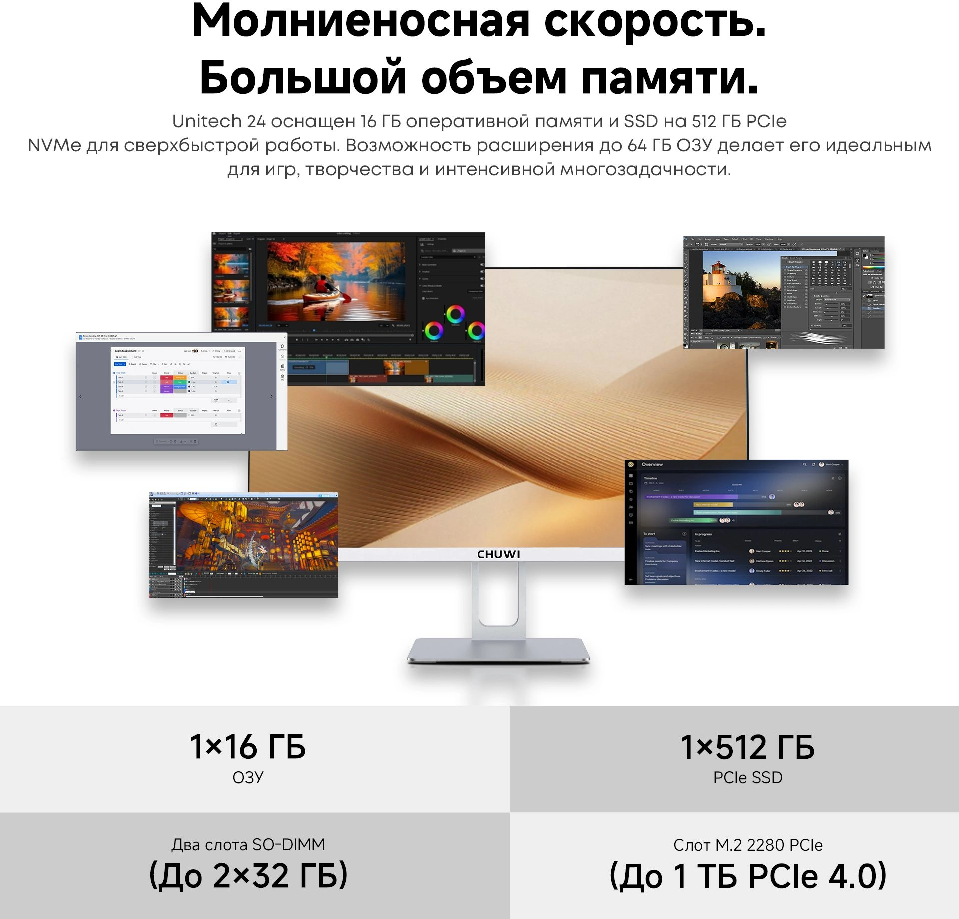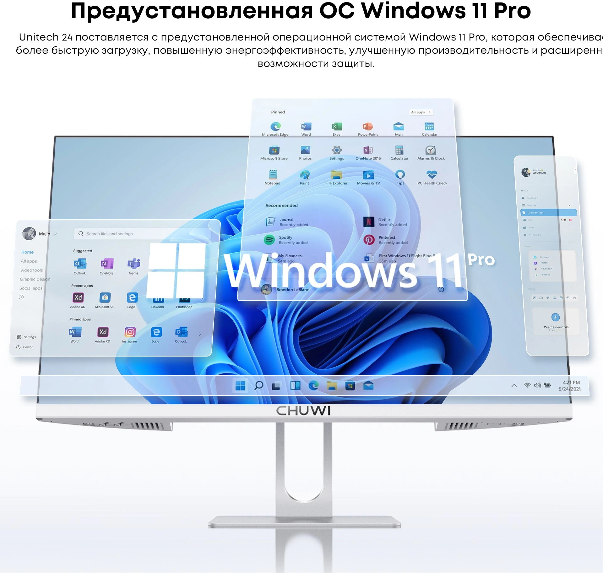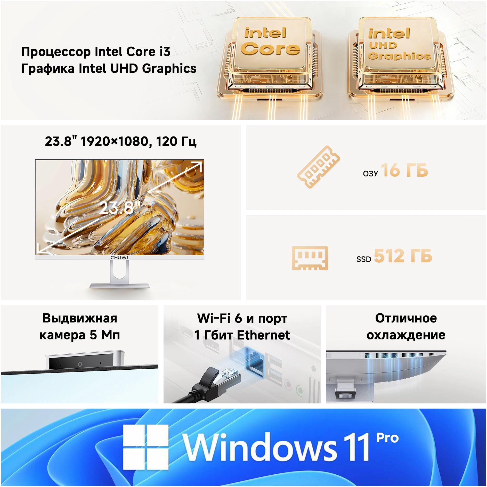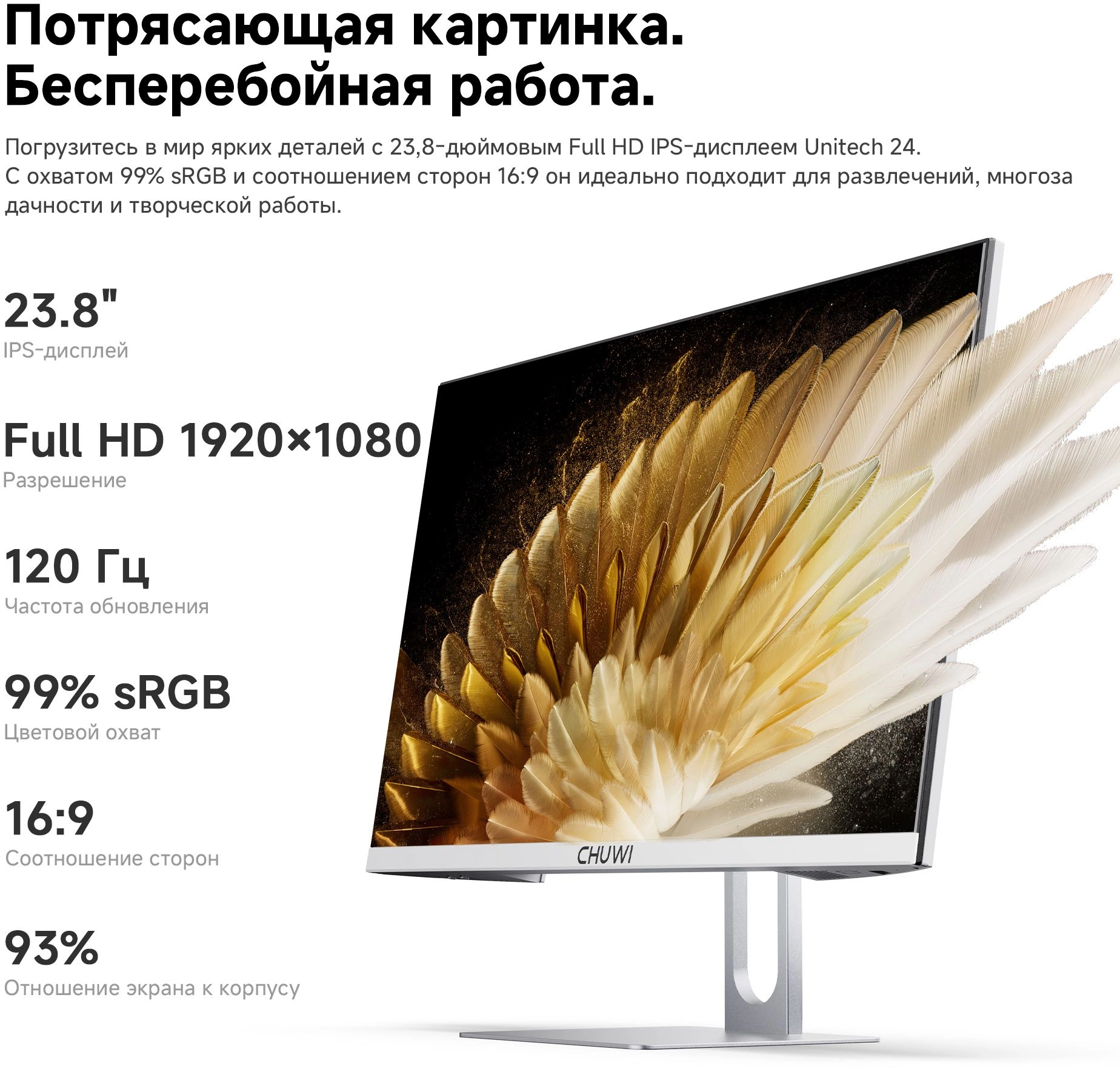 Моноблок Chuwi Unitech 24 23.8" Full HD i3 1220P (1.5) 16Gb SSD512Gb UHDG Windows 11 Pro GbitEth WiFi BT 90W клавиатура мышь Cam белый/серебристый 1920x1080