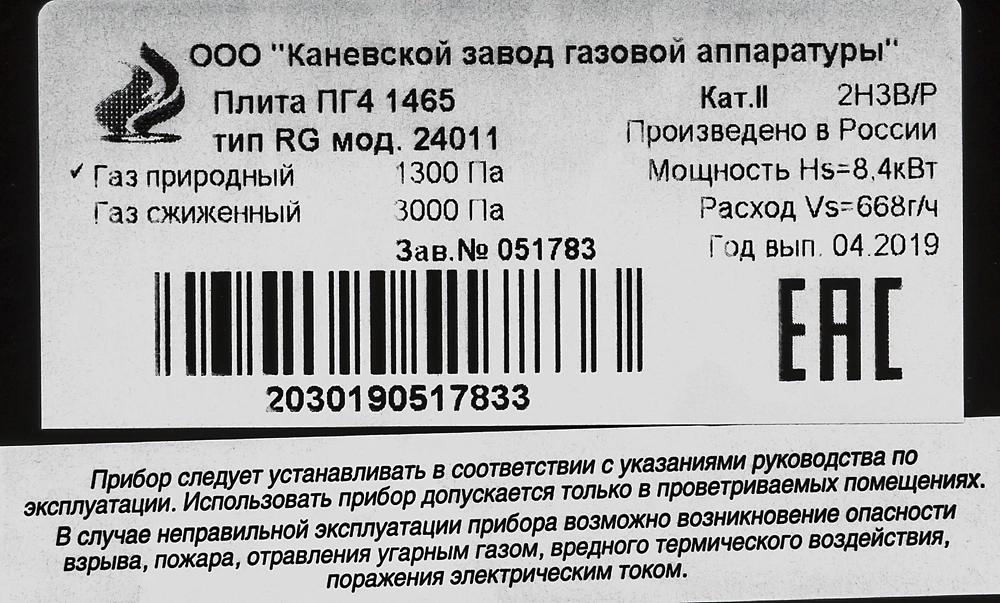 - ДополнительноВид и давление газа - Природный (метан) 1300 Па.
