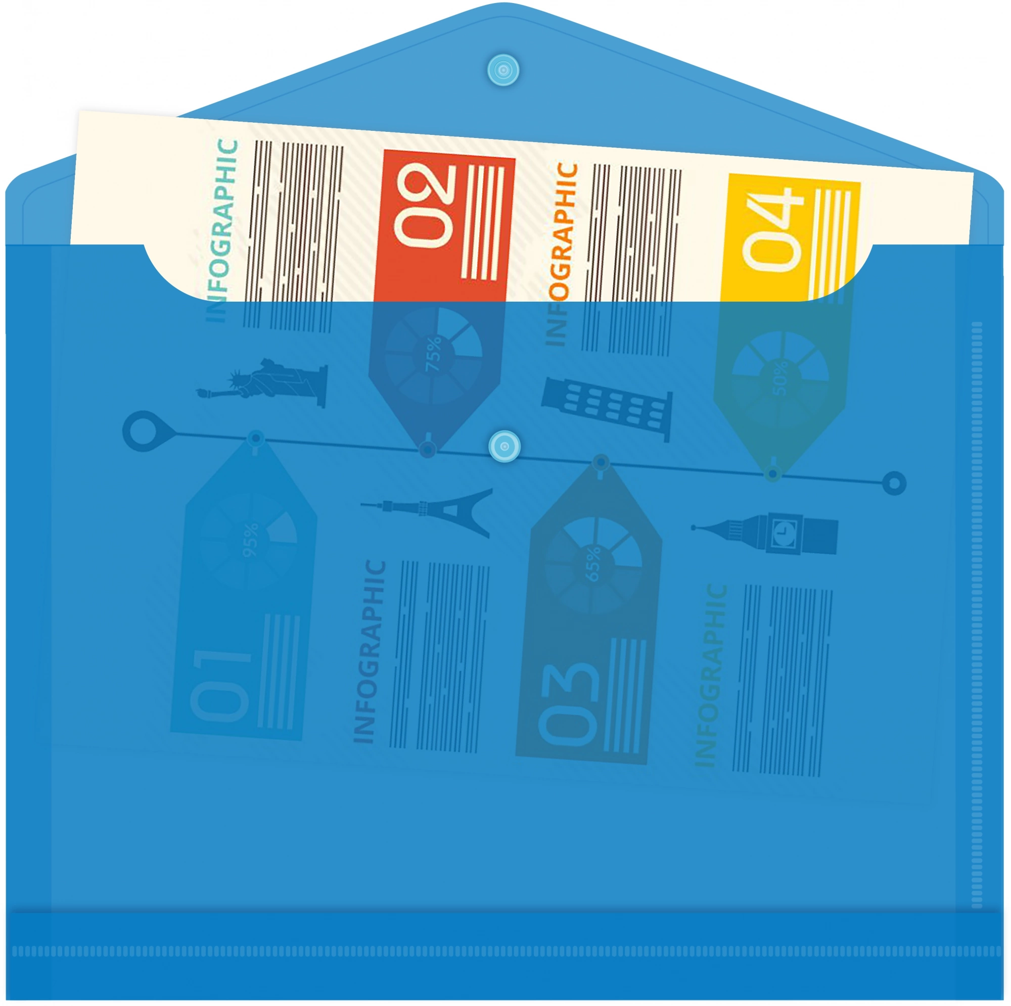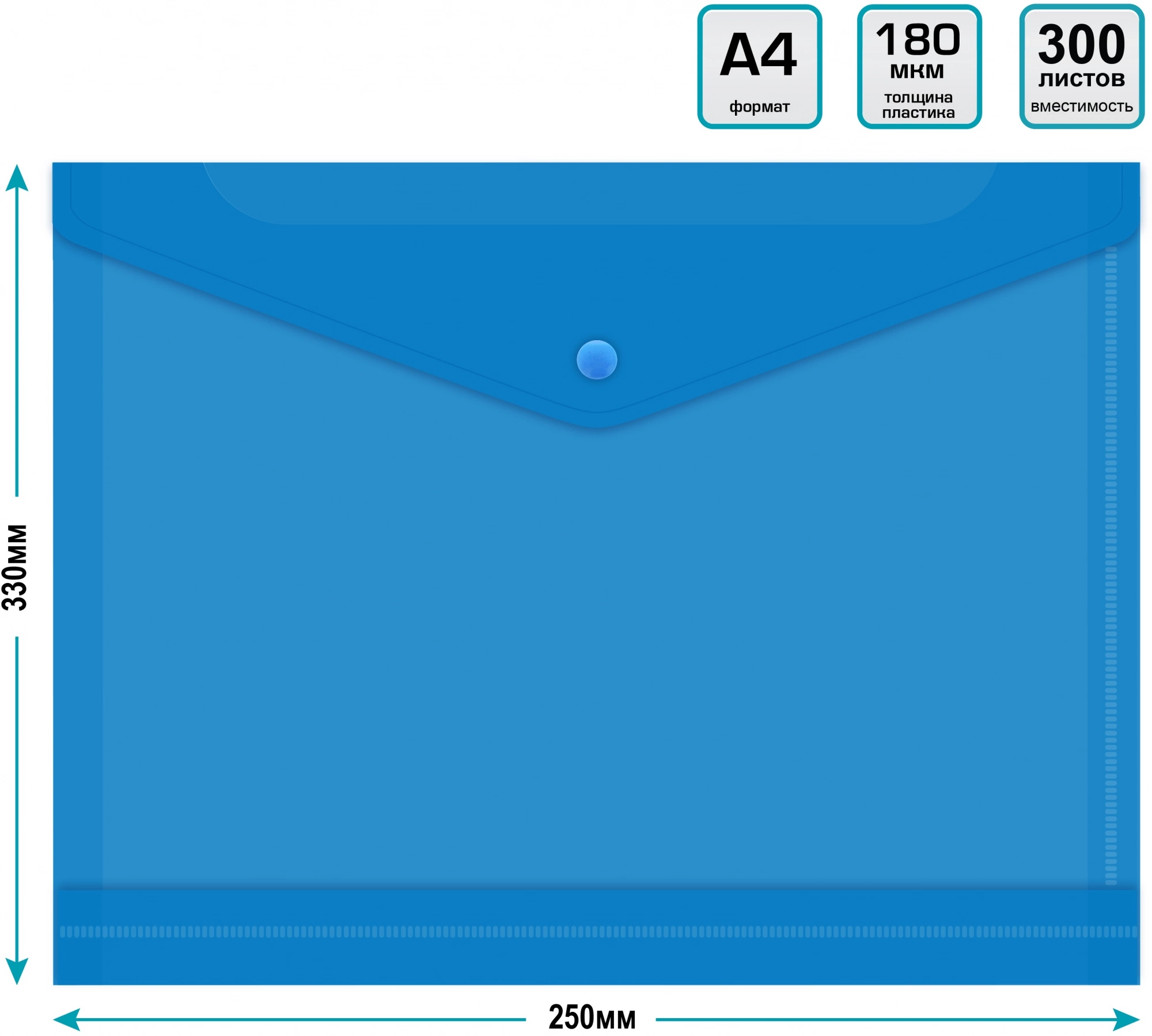 Конверт на кнопке Бюрократ -PK860BLU/1 A4 гориз. расшир. пластик 0.18мм синий