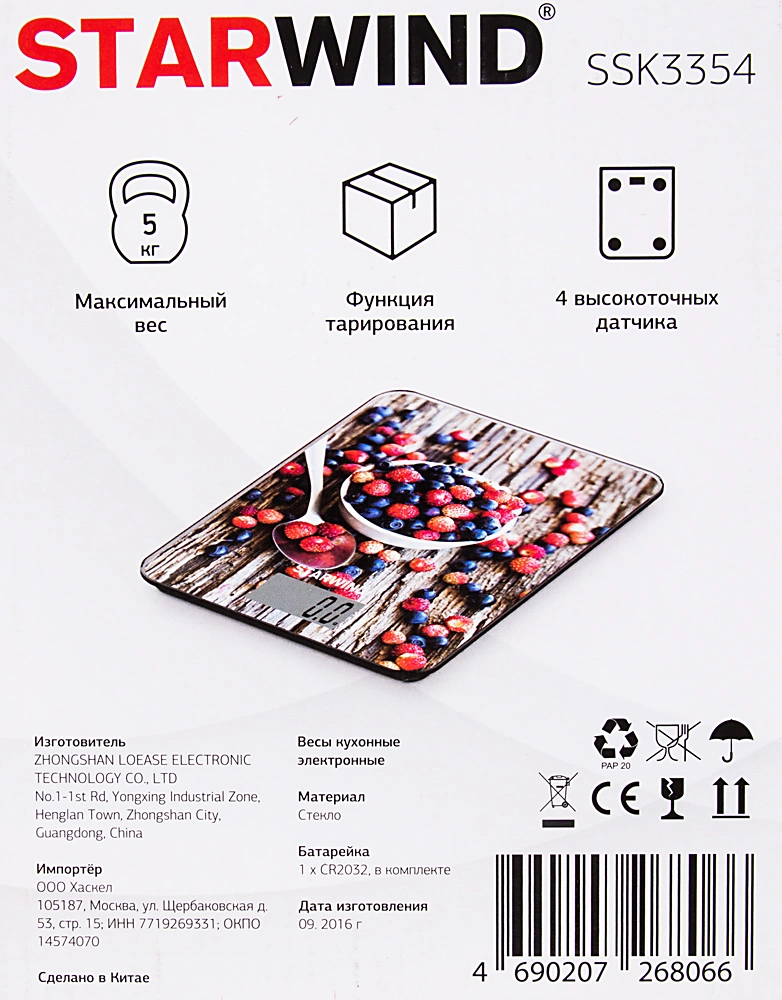 Весы кухонные электронные Starwind SSK3354 макс.вес:5кг