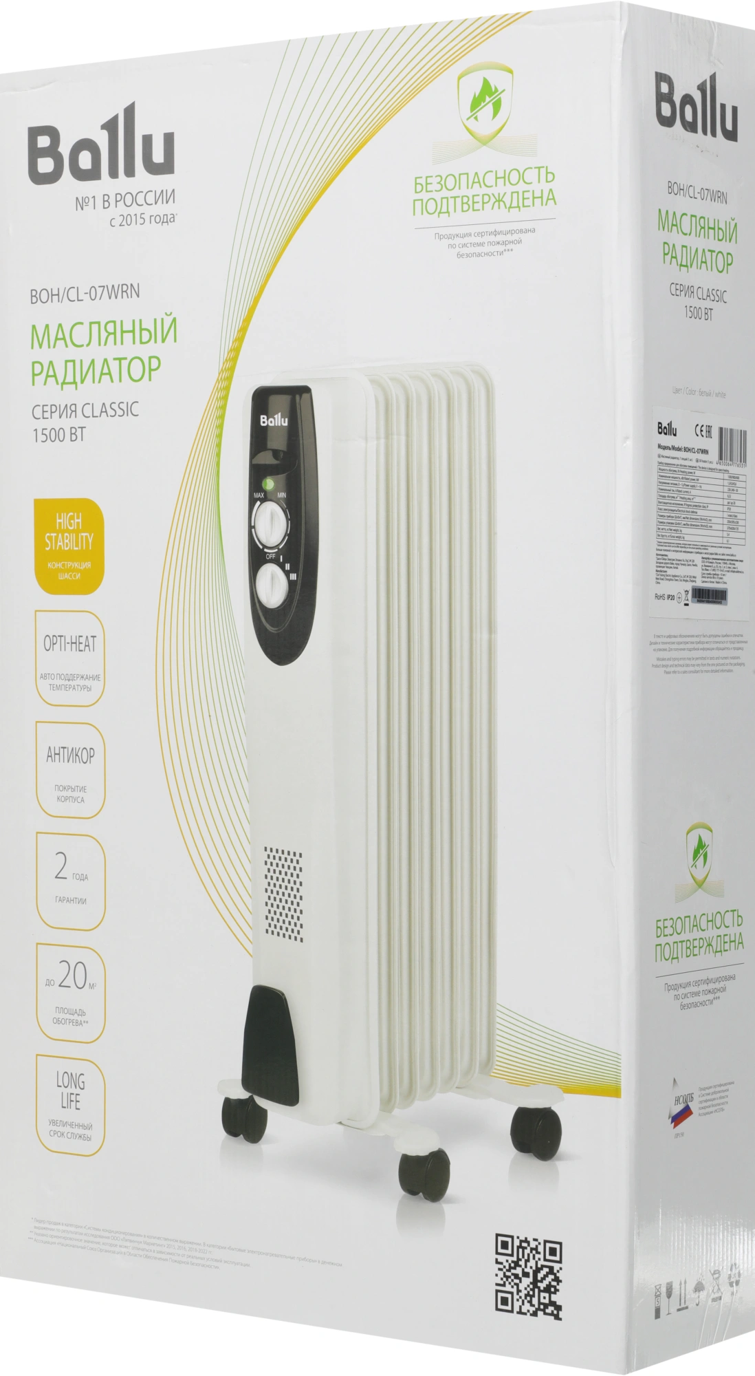 Радиатор масляный Ballu Classic BOH/CL-07WRN 1500Вт белый/черный