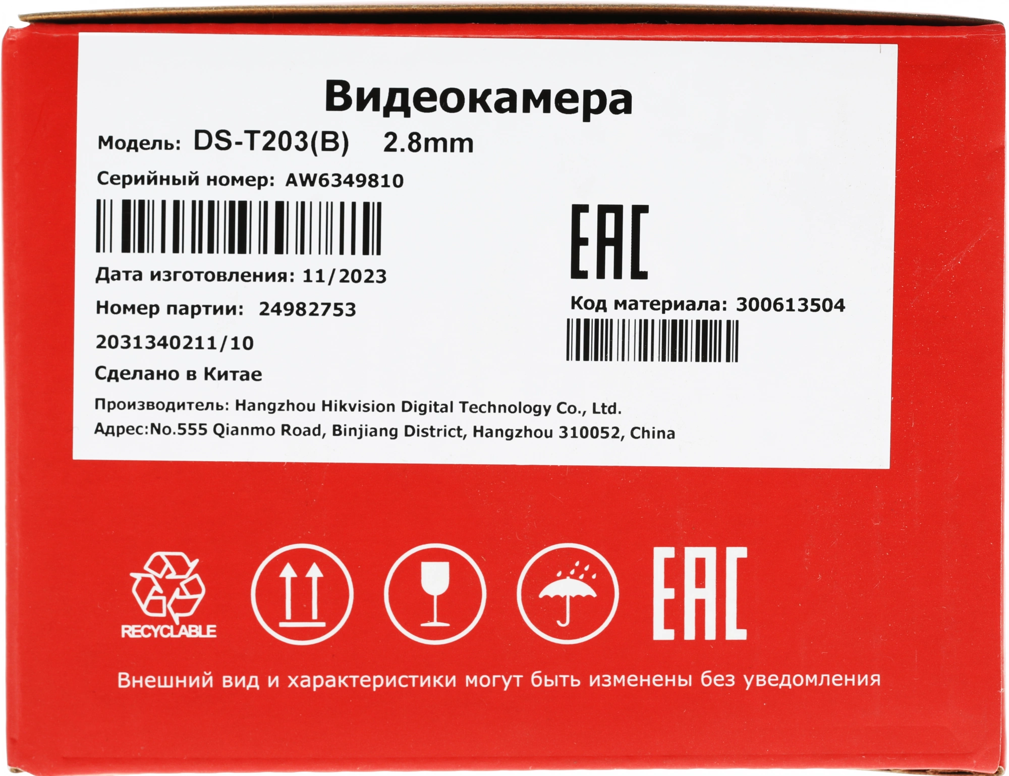 | Код производителя | DS-T203(B) (2.8 MM) |