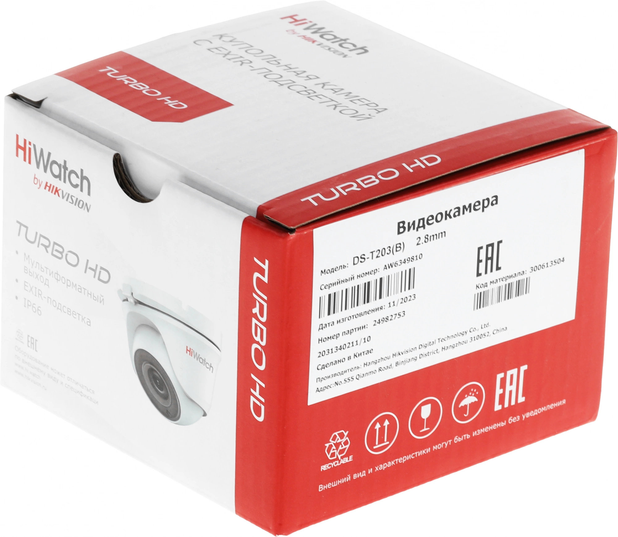 Камера видеонаблюдения аналоговая HiWatch DS-T203(B) 2.8-2.8мм HD-CVI HD-TVI цв. корп.:белый (DS-T203(B) (2.8 MM))