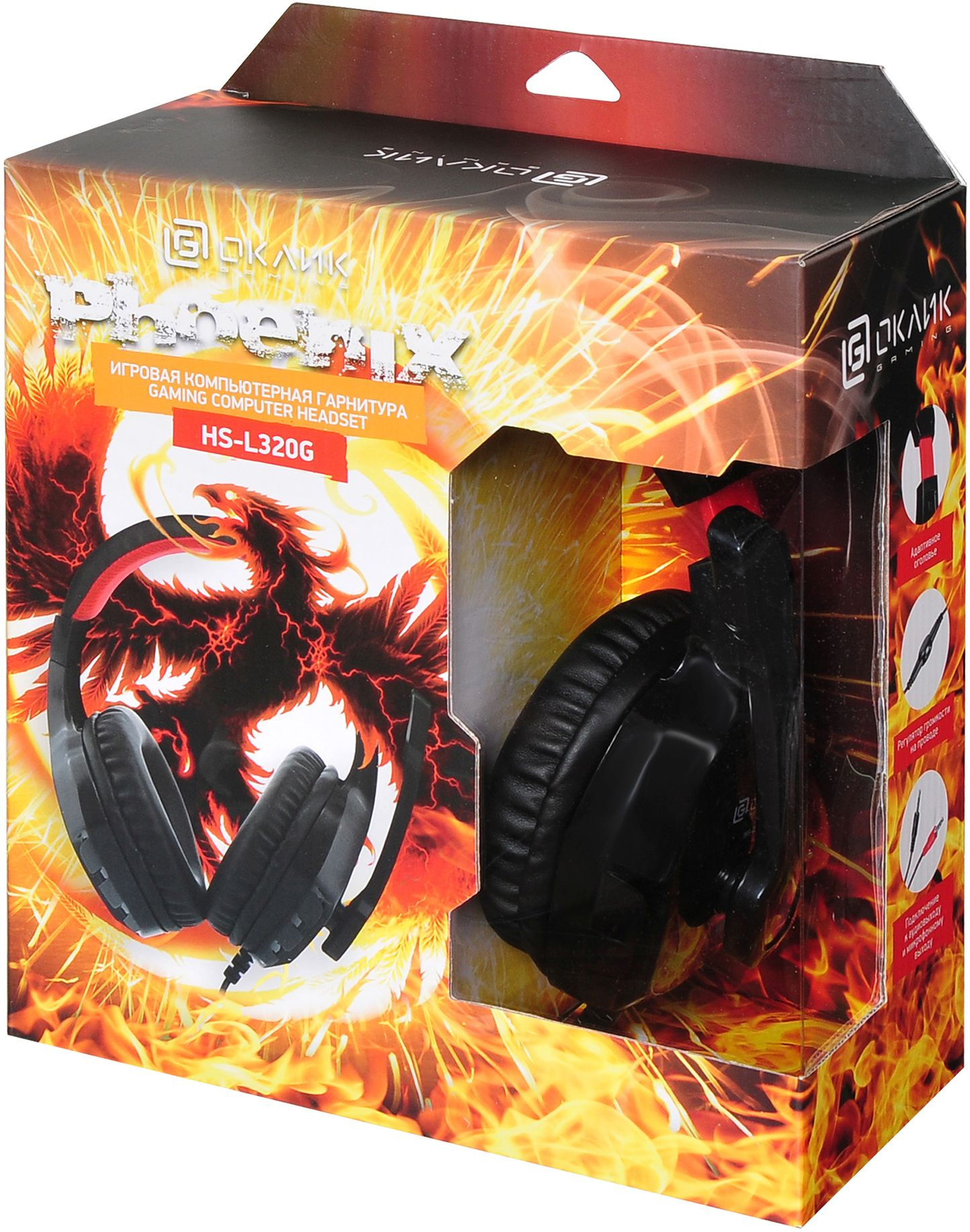 Наушники с микрофоном Оклик HS-L320G Phoenix черный/красный 1.9м мониторные оголовье (359482)