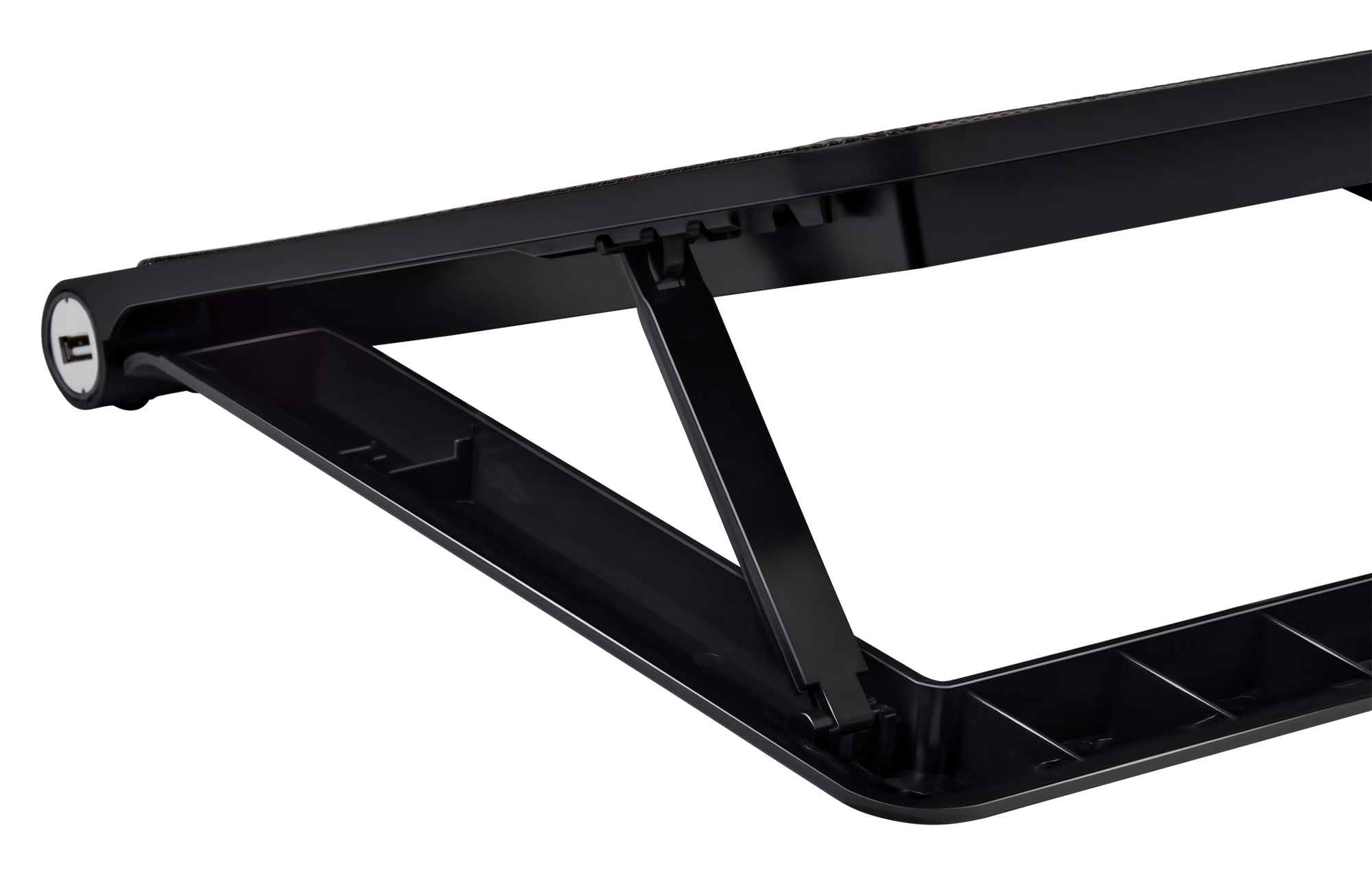 Поставка для ноутбука сочетающая в себе удобный дизайн и высокую эффективность охлаждения. Встроенные вентиляторы предотвращают перегрев ноутбука, а возможность регулировки угла наклона позволяет установить ноутбук в идеальном рабочем положении. Встроенные упоры для ноутбука.