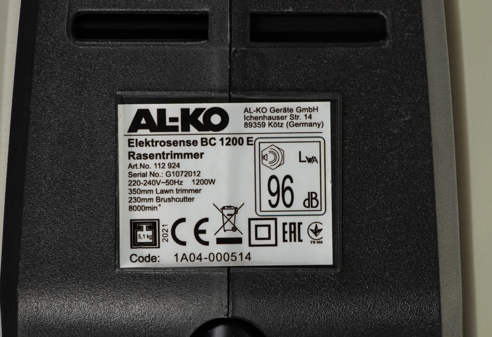 Триммер электрический Al-Ko BC 1200 E 1200Вт 1.63л.с. разбор.штан. реж.эл.:леска/нож
