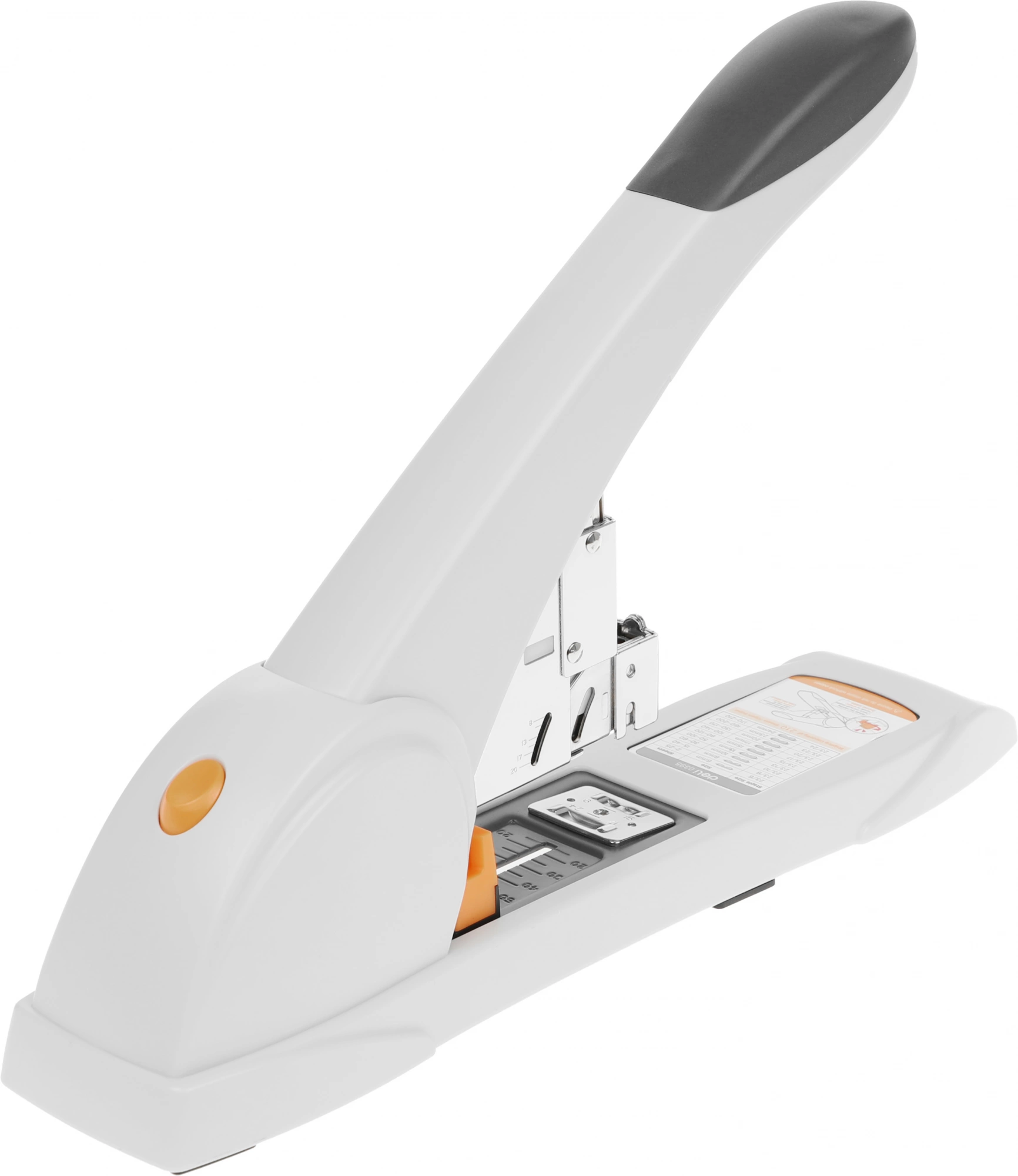 - ОсобенностиМощный степлер на 210 листов, прорезиненная рукоять, инновационный механизм удаления застрявшей скобы, цвета: серый и черный, фронтальная загрузка скоб, открытое и закрытое сшивание