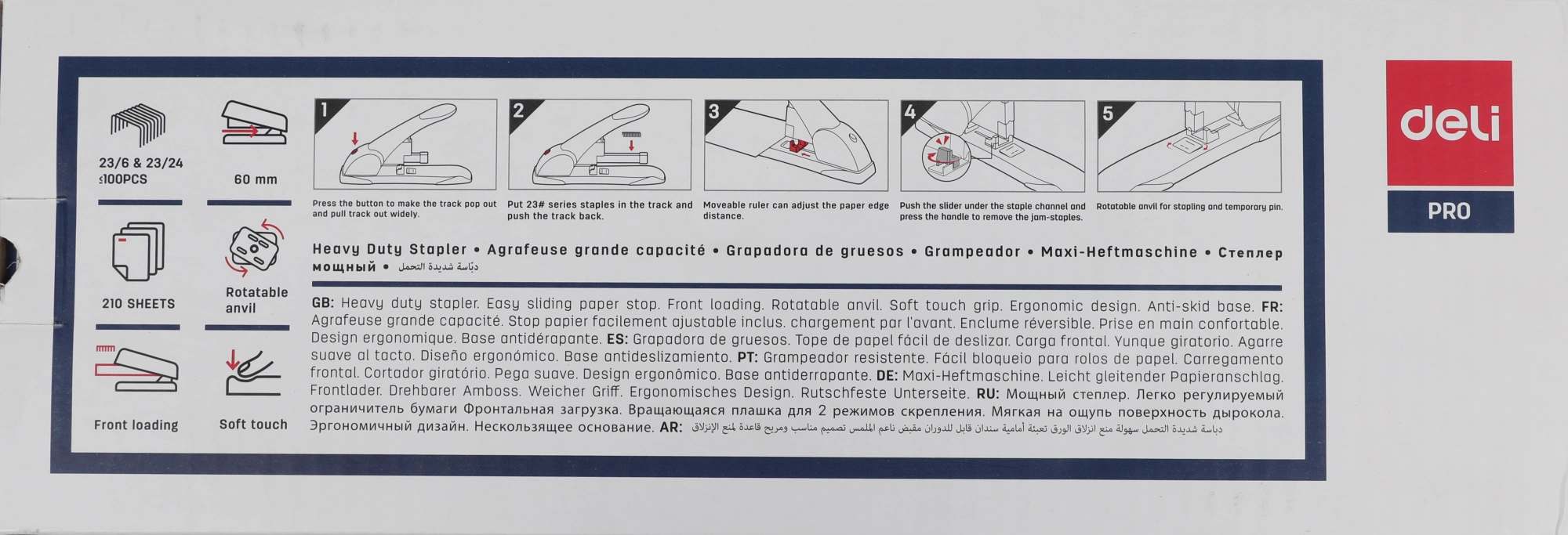 Степлер мощный Deli E0395 23/6 23/8 23/10 23/13 23/15 23/17 23/20 23/23 (210листов) ассорти 100скоб коробка