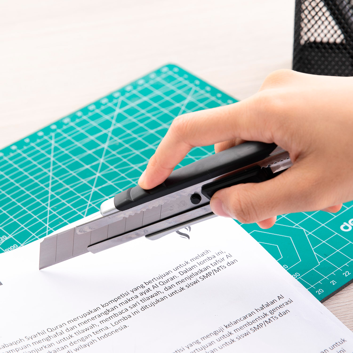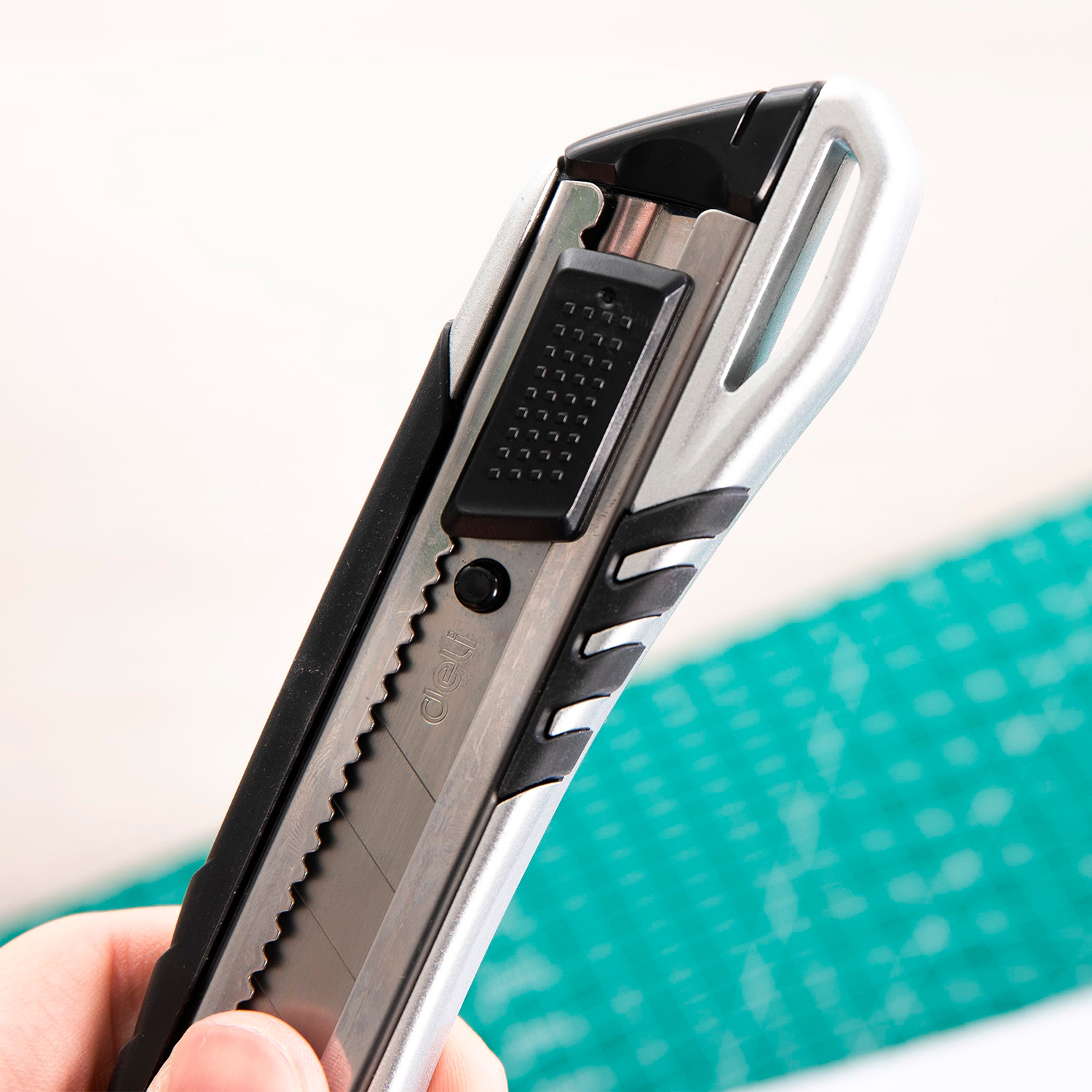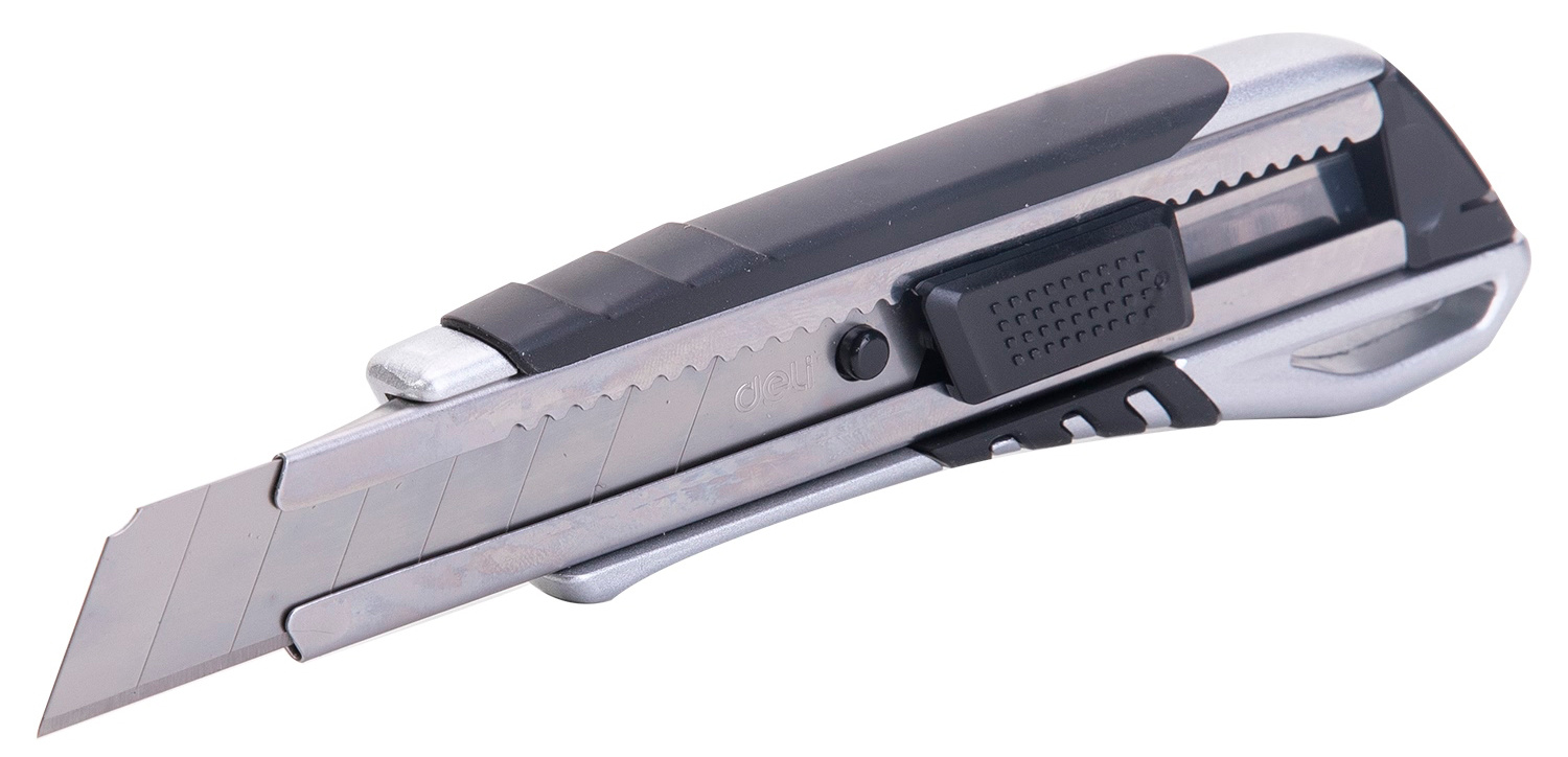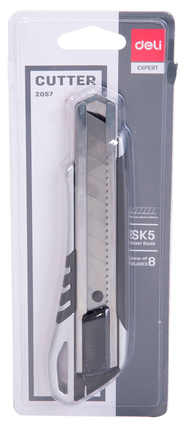 Нож канцелярский Deli E2057 шир.лез.18мм сталь серый/черный блистер