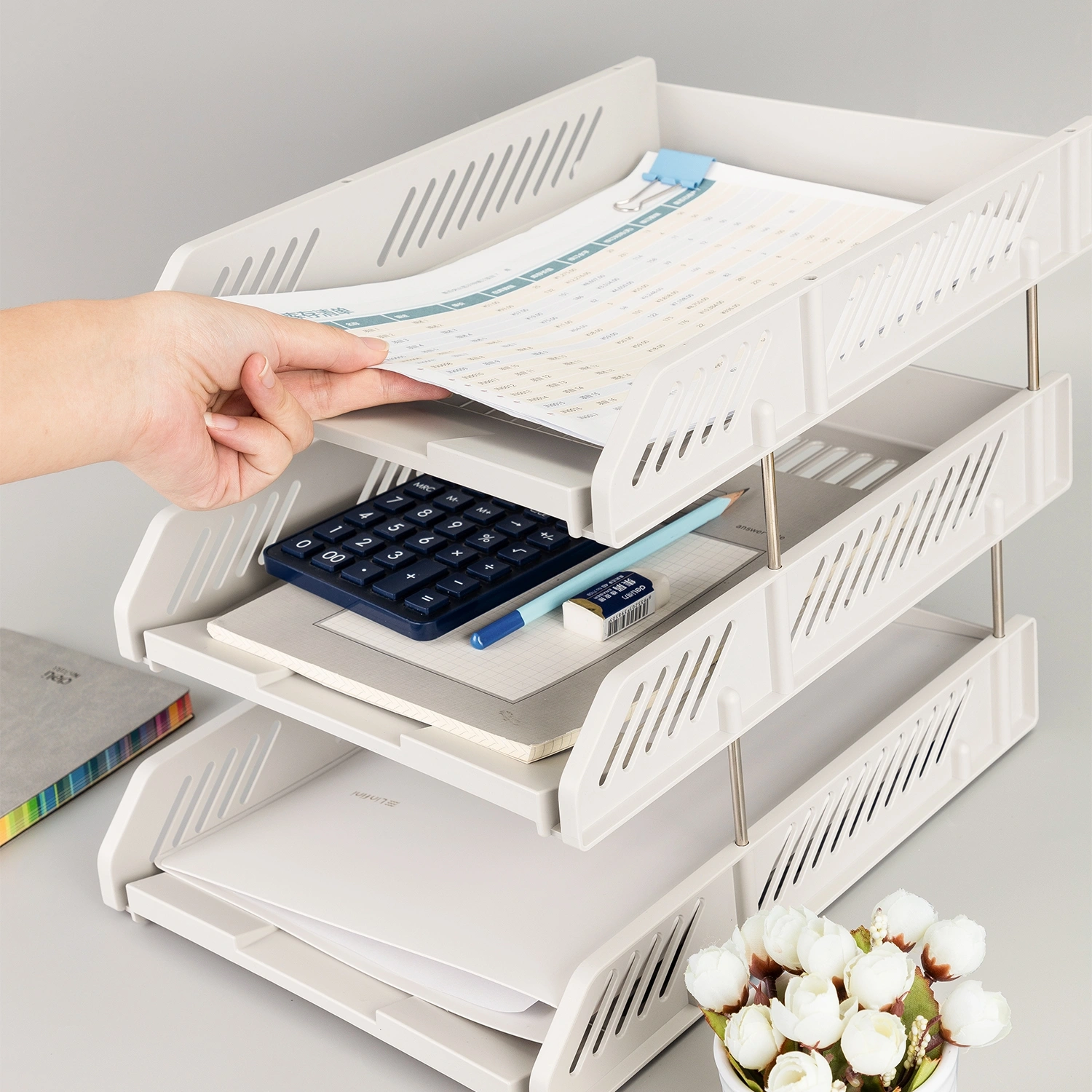 Лоток горизонтальный Deli E9209 для бумаг 268х336х118мм ассорти