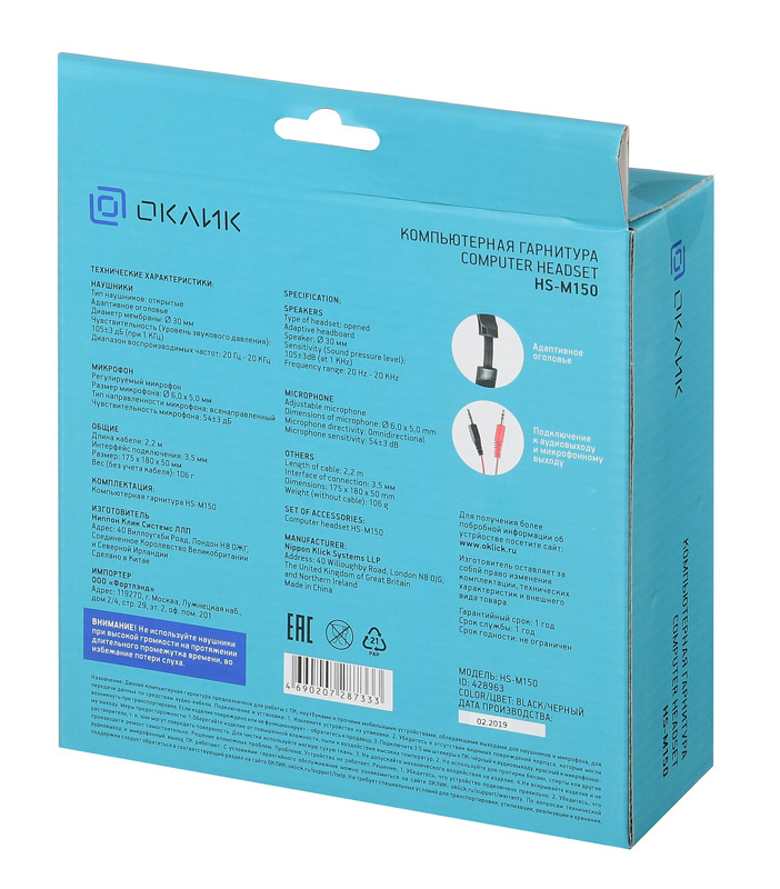 Наушники с микрофоном Оклик HS-M150 черный 2.2м накладные оголовье (428963)