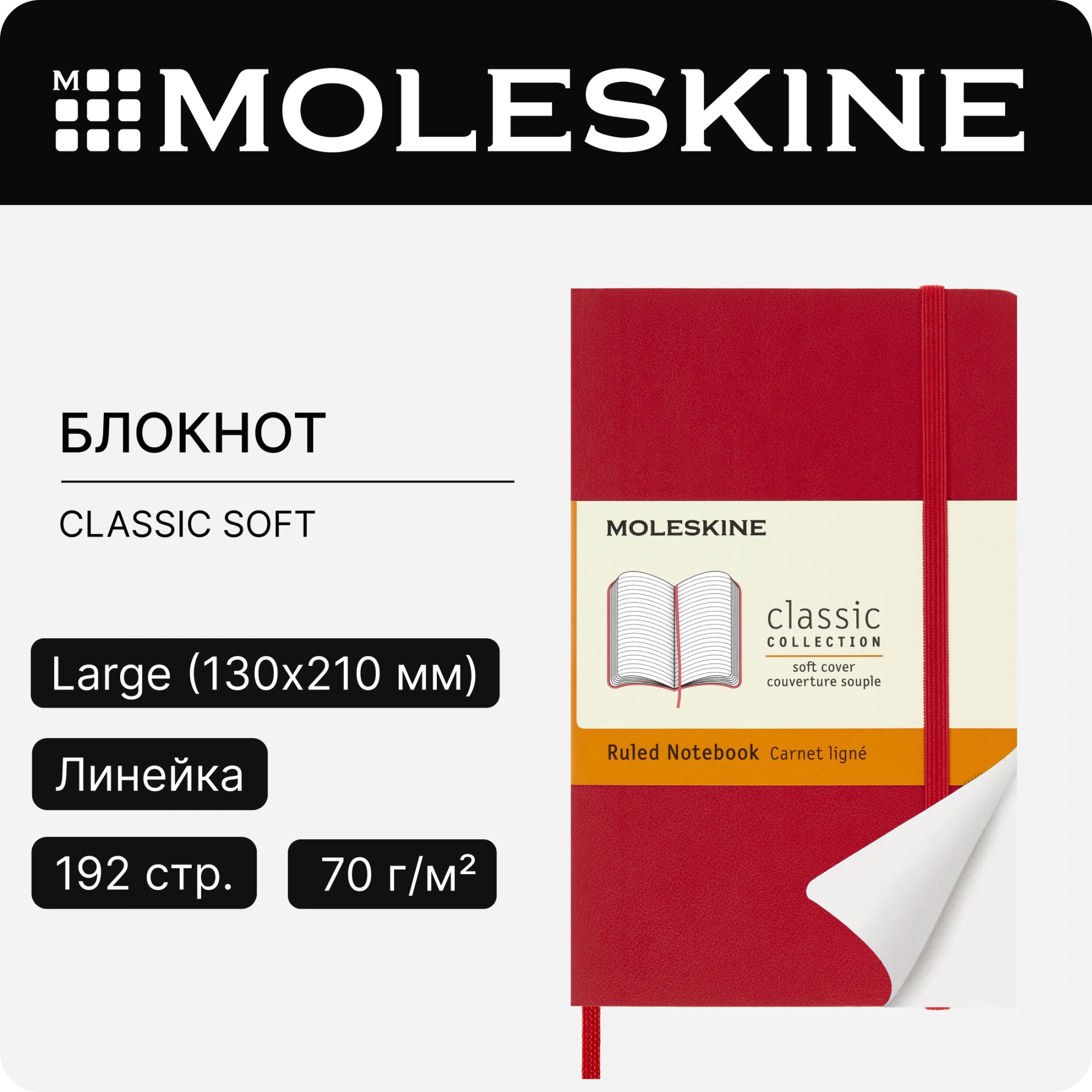 Блокнот Moleskine CLASSIC SOFT QP611F2 Pocket 90x140мм 192стр. линейка мягкая обложка красный