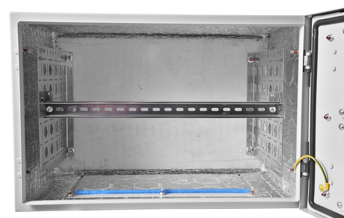 - КомплектацияШкаф, паспорт, кронштейны крепления на стену – 4 шт., болты М8х16 для кронштейнов крепления на стену – 4 шт., кронштейны юнитовые – 12/18/22/30/36 (см. табл. с тех. характеристиками), DIN-рейка.