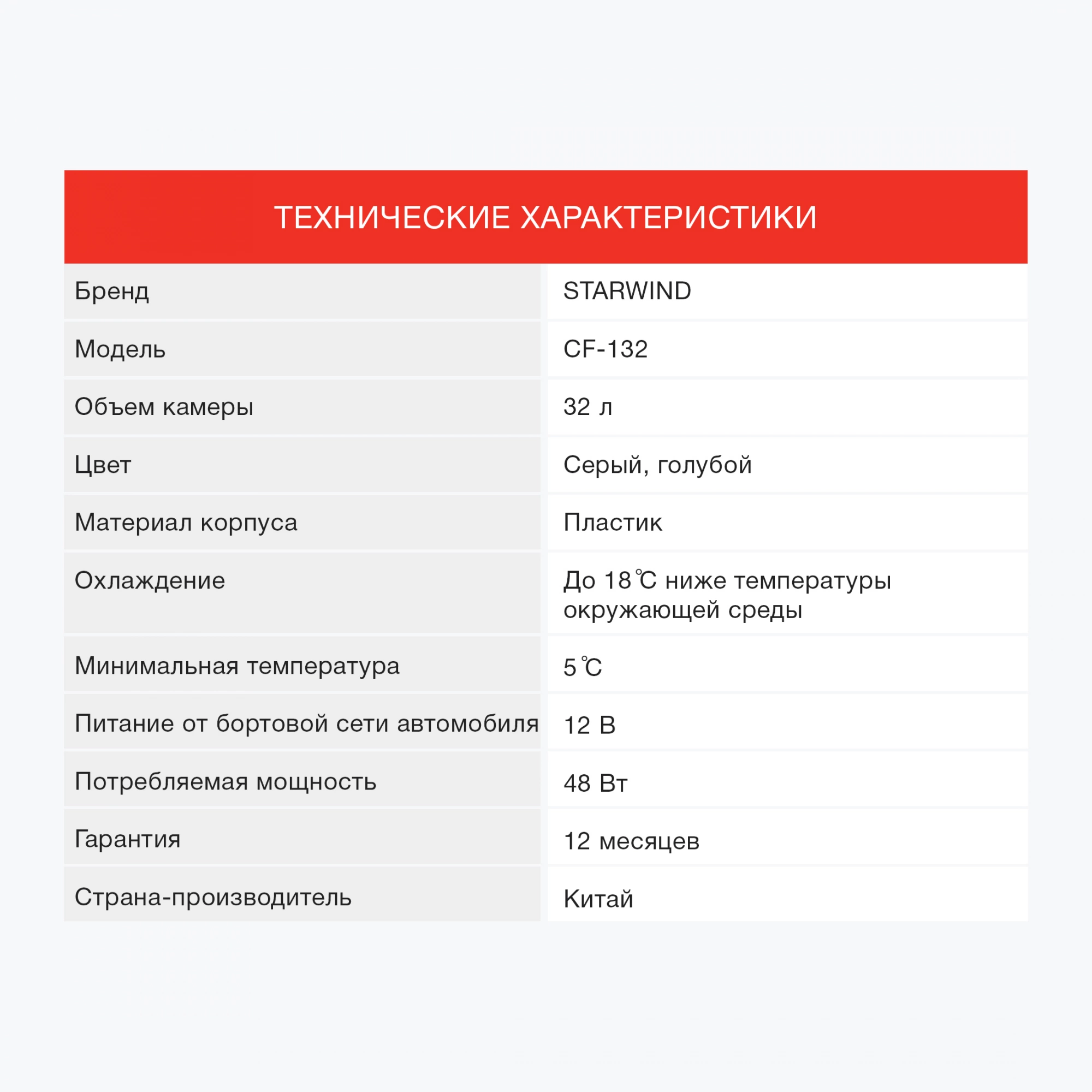 Автохолодильник Starwind CF-132 32л 48Вт серый/голубой