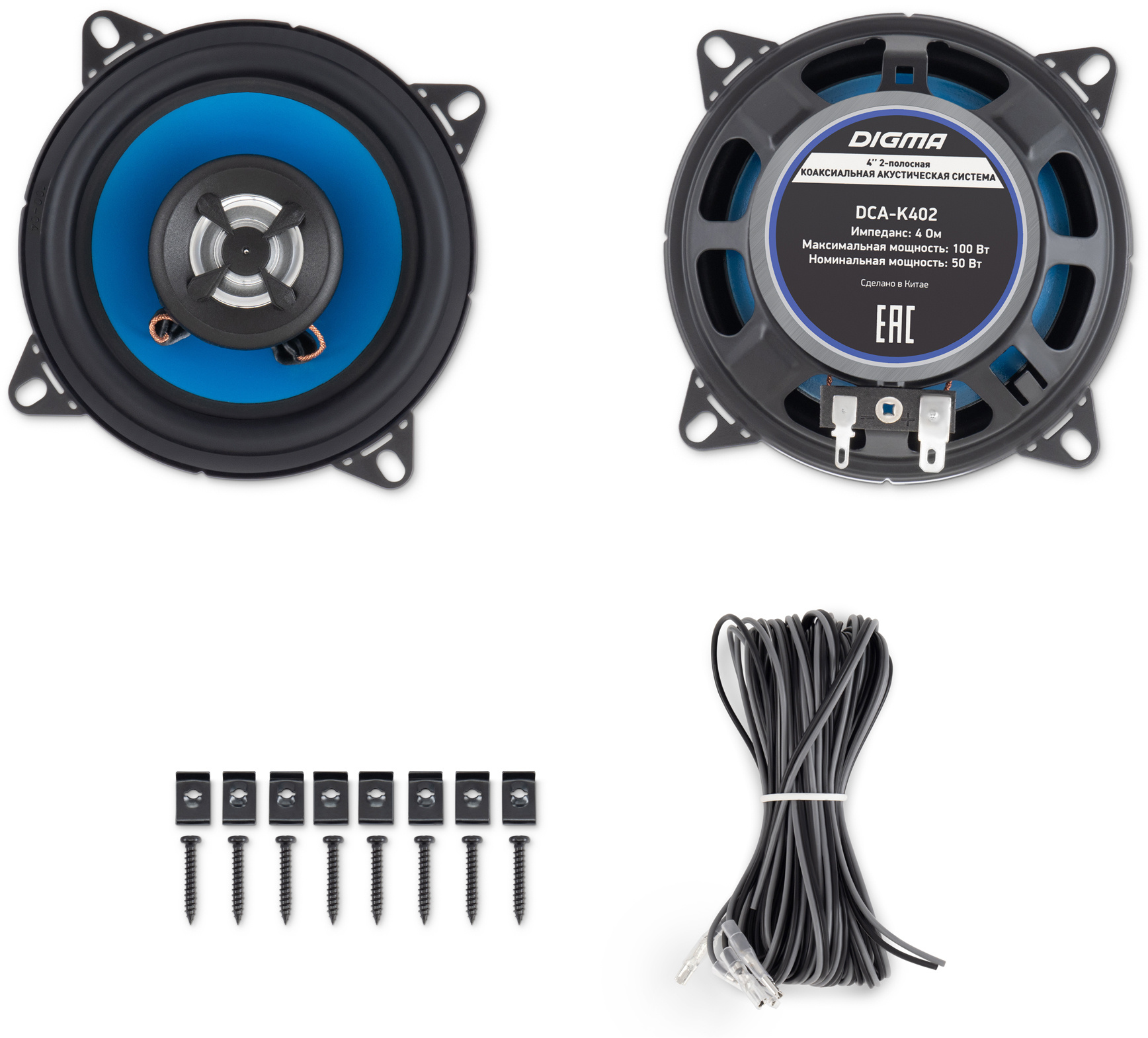Колонки автомобильные Digma DCA-K402 (без решетки) 100Вт 90дБ 4Ом 10см (4дюйм) (ком.:2кол.) коаксиальные двухполосные