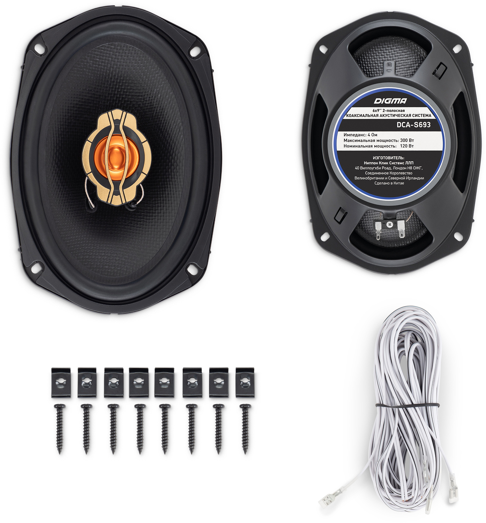 Колонки автомобильные Digma DCA-S693 (без решетки) 300Вт 86дБ 4Ом 15x23см (6x9дюйм) (ком.:2кол.) коаксиальные трехполосные